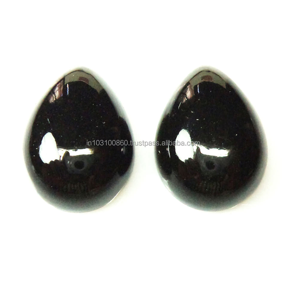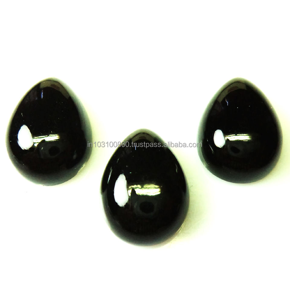 นิลธรรมชาติสีดํา Cabochon แพร์รูปร่างฟรีขนาดอัญมณีหลวม 3A คุณภาพขายส่งที่ดีที่สุดราคากึ่งมีค่าหลวมนิลสีดํา