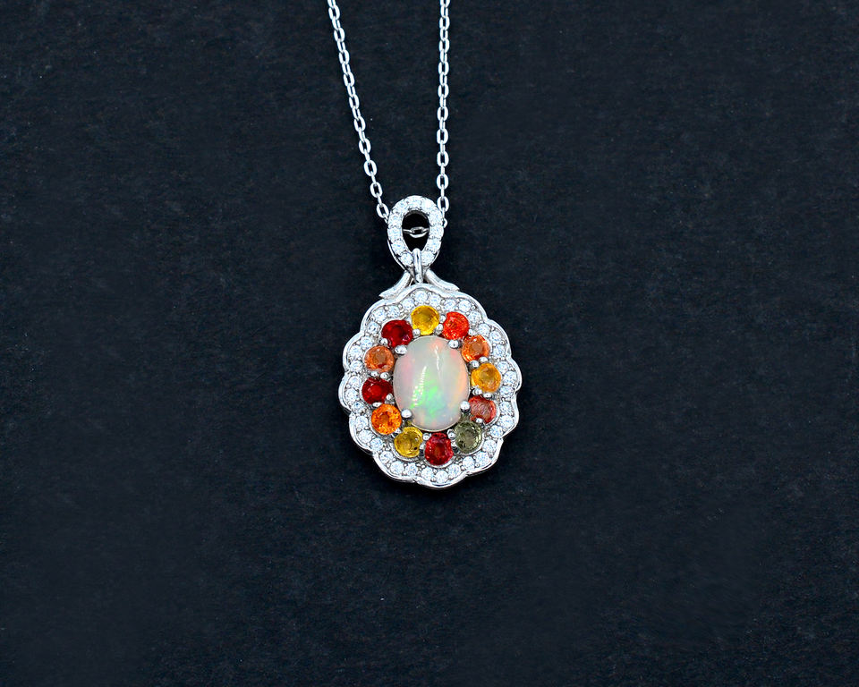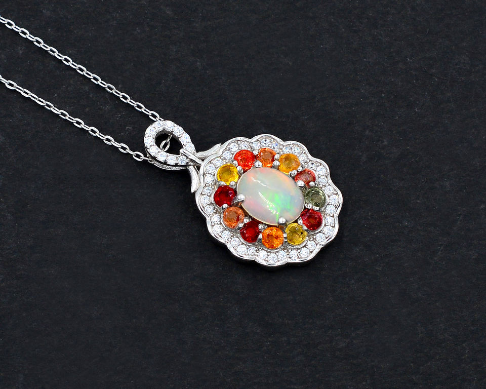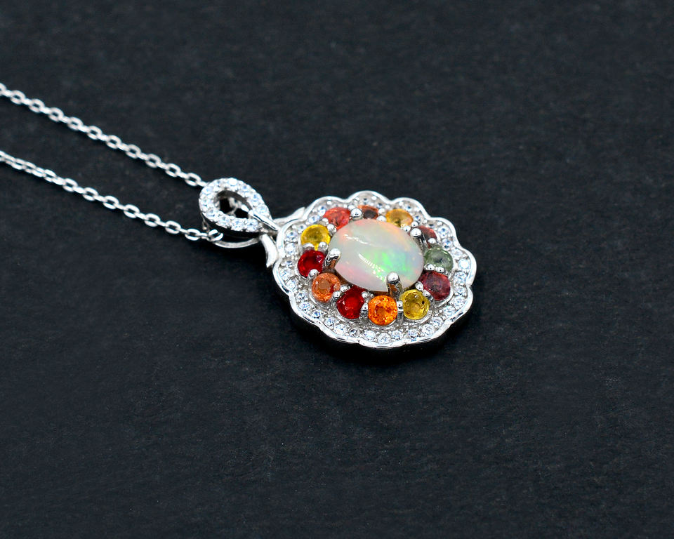 สร้อยคอจี้โซ่เงินแท้925อัญมณีโอปอลธรรมชาติและแซฟไฟร์หลายแบบสำหรับเป็นของขวัญ