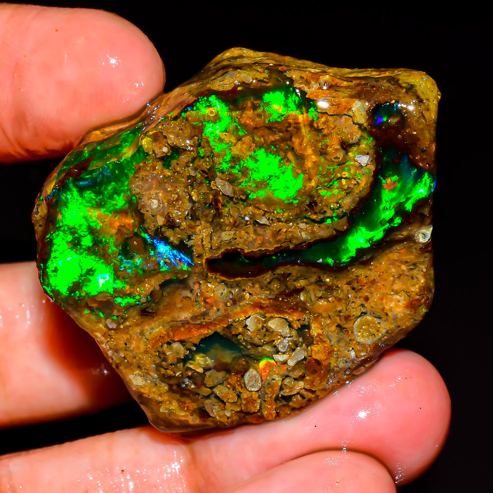 อัญมณีโอปอลธรรมชาติ, พลอยหยาบโอปอลเอธิโอเปีย, อัญมณีหลวม, โอปอลไฟหลายไฟ, โอปอลเอธิโอเปียนดิบ, 98 ct. R-127