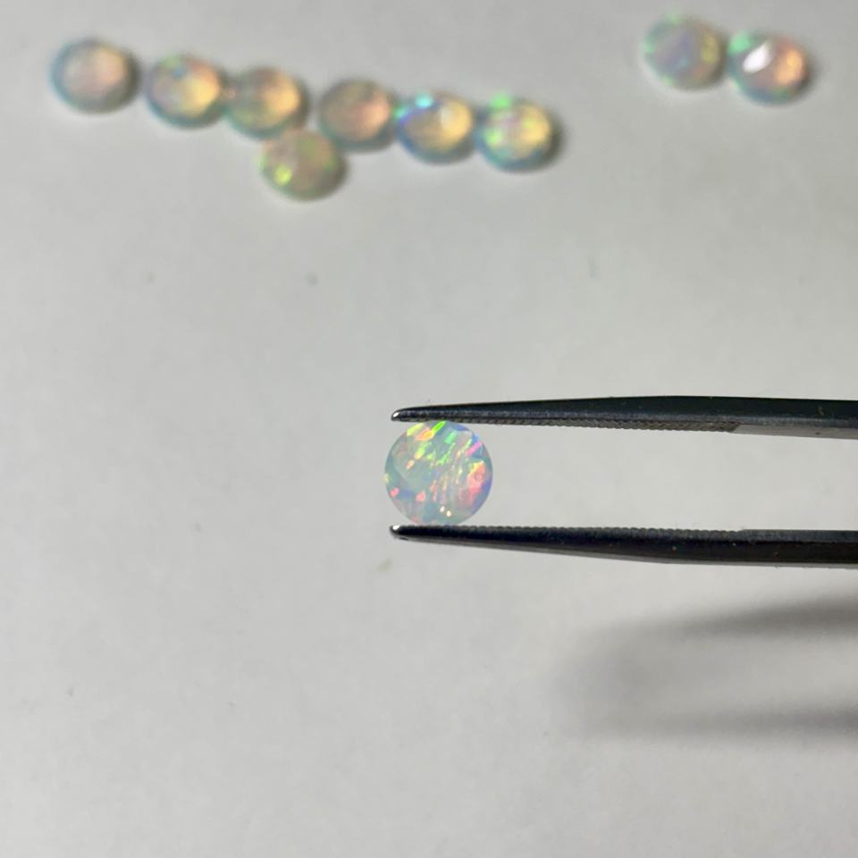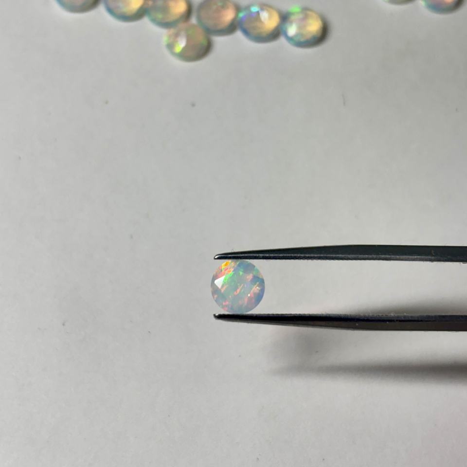 โอปอลธรรมชาติอัญมณีเหลี่ยมเพชรพลอยโอปอลสีขาวเอธิโอเปียอัญมณีหลวมได้รับการรับรองการเล่นสีไฟ6มม