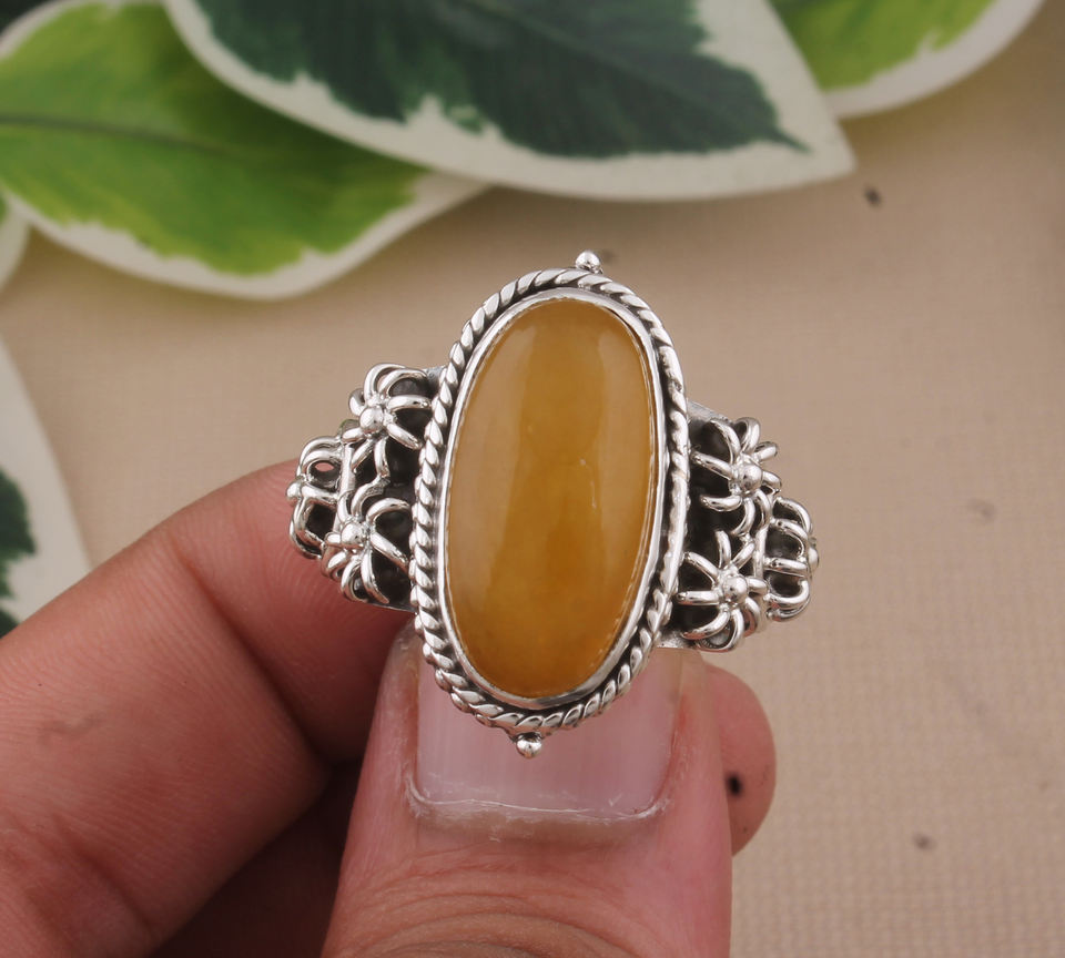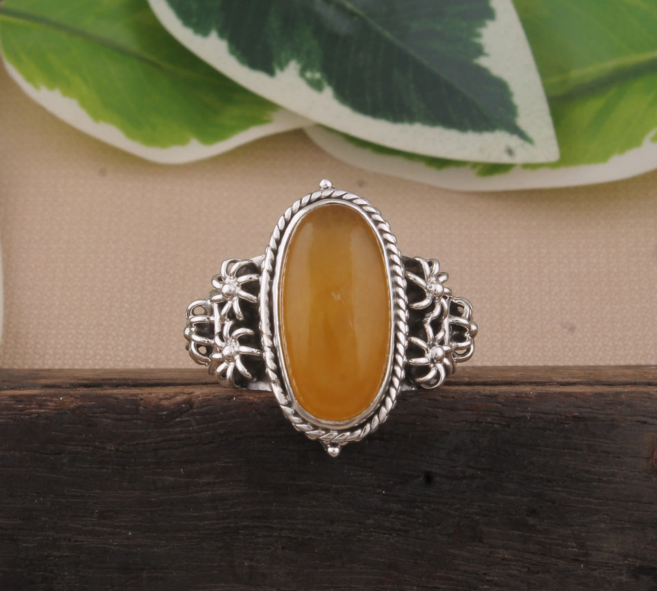 แหวนแคลไซต์สีส้มธรรมชาติ925แหวนแคลไซต์รูปไข่แหวนเงินสเตอร์ลิงเครื่องประดับแฮนด์เมดของขวัญครบรอบ