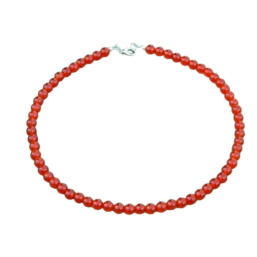 สร้อยอัญมณีคาร์เนเลียนสีส้มธรรมชาติขนาด16นิ้วลูกปัดสีส้มกลมเรียบสร้อยคอพลอยคาร์เนเลี่ยน