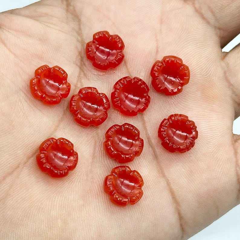 พลอยคาร์เนเลียนสีส้มธรรมชาติ รูปทรงดอกไม้ แกะสลัก คุณภาพดี ขนาด 11 มม. เม็ดพลอยหลวมสำหรับทำเครื่องประดับ
