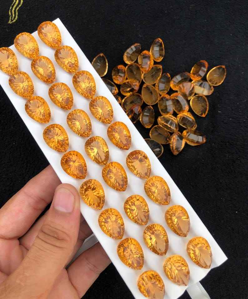 หินซิทรีนสีส้มธรรมชาติแบบหลวมแผ่กระจายแสงที่อบอุ่นในอุดมคติ