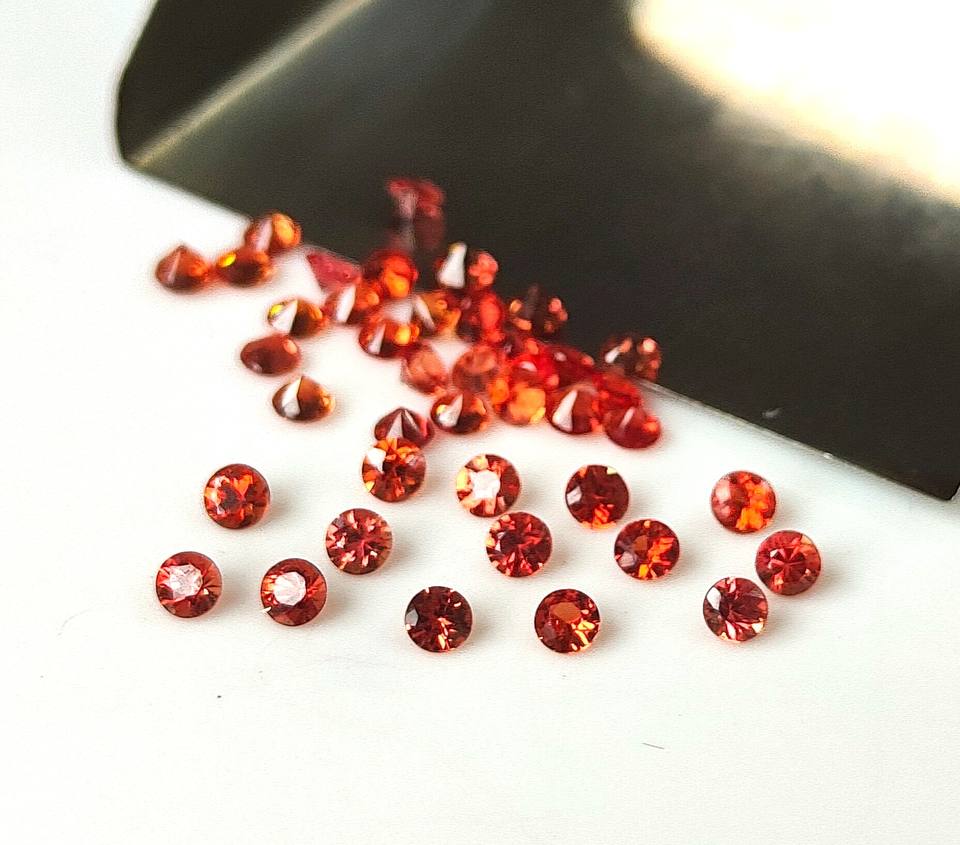 ไพลินสีส้มธรรมชาติ1มม.-4มม. อัญมณีหลวมคุณภาพสูงทรงกลมตัดสวยงาม