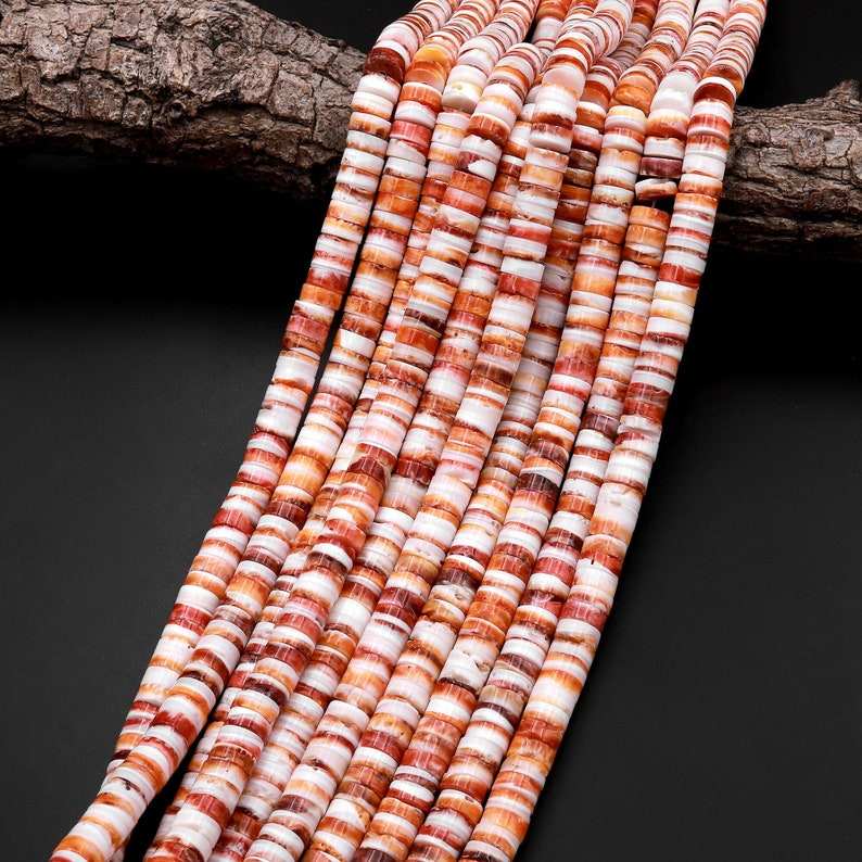 ลูกปัดหินมุกหนามสีส้มธรรมชาติ