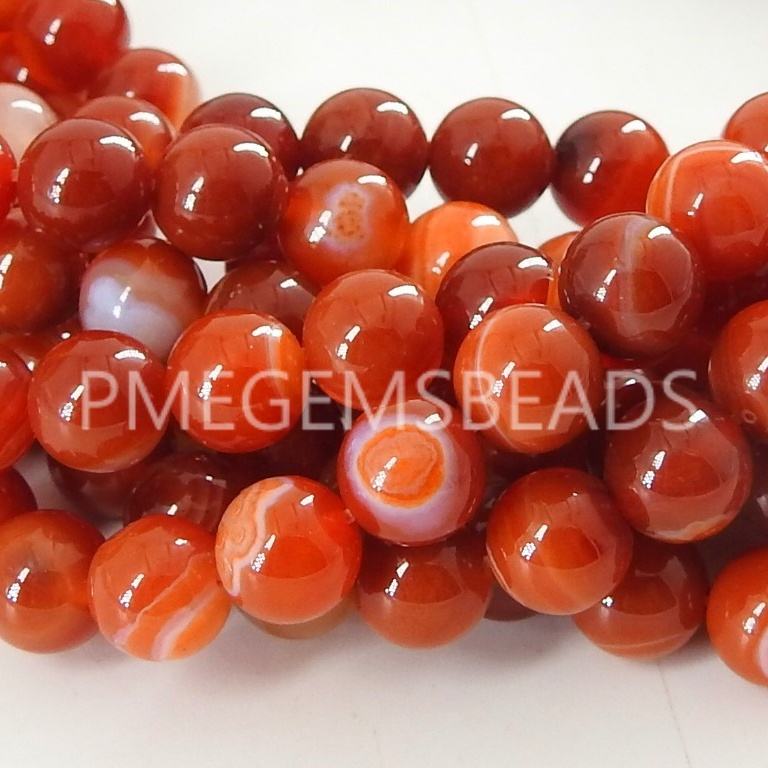 Natural Orange Stripe Agate Chalcedony Loose Stone Beaded Bracelet Necklace 15Inch 8MM Third Party Certified 47pcs PME GemsBeads