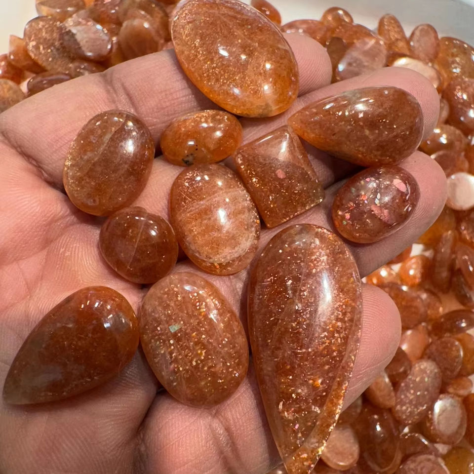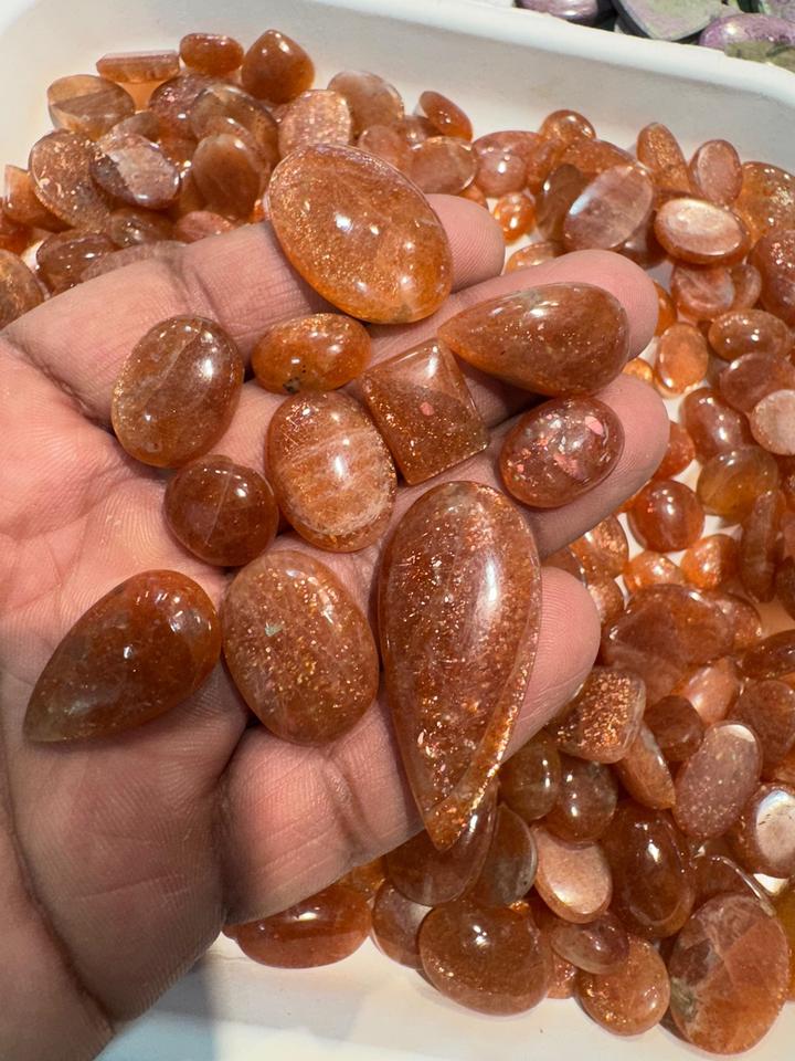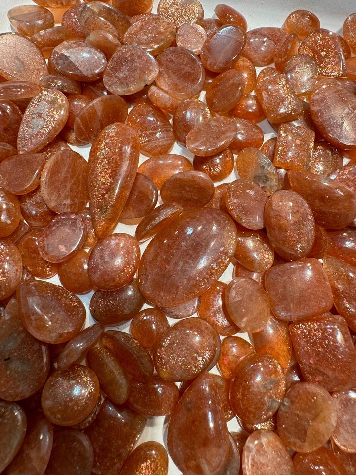 พลอยซันสโตนสีส้มธรรมชาติ รูปไข่ ขนาดฟรีไซส์ แบบคาโบชอง มีการเปลี่ยนสี/เปล่งประกาย สำหรับทำเครื่องประดับ