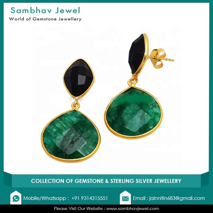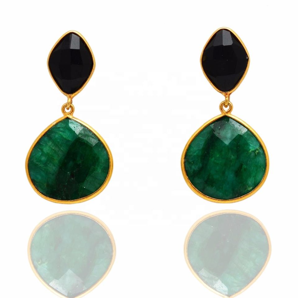 พลอยมรกตย้อมสีธรรมชาติแบบออร์แกนิก เงินแท้ 925 ชุบทอง งานแฮนด์เมด สไตล์วินเทจ มินิมอล ของขวัญสำหรับผู้หญิง