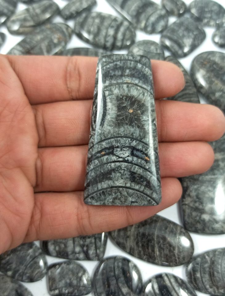 Orthoceras ฟอสซิลธรรมชาติที่มีรูปร่างและขนาดแตกต่างกันอัญมณีหลวมห่อลวดอัญมณีแฮนด์เมดหลังแบนขายส่ง