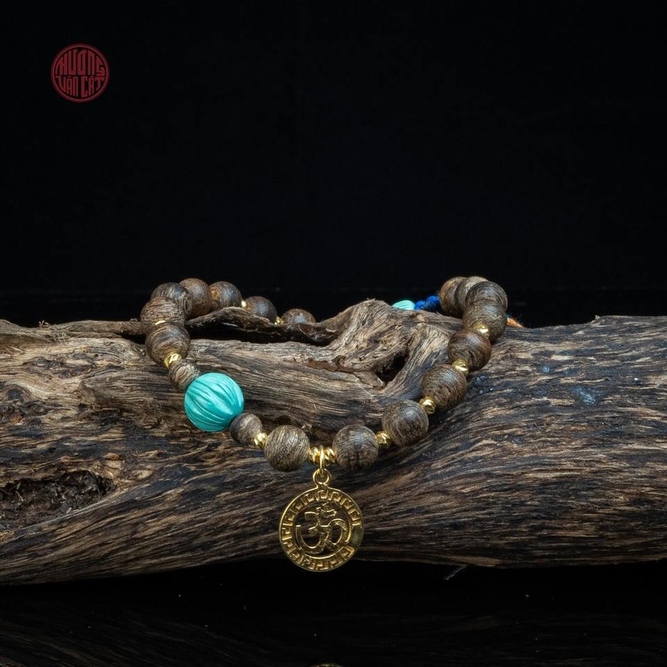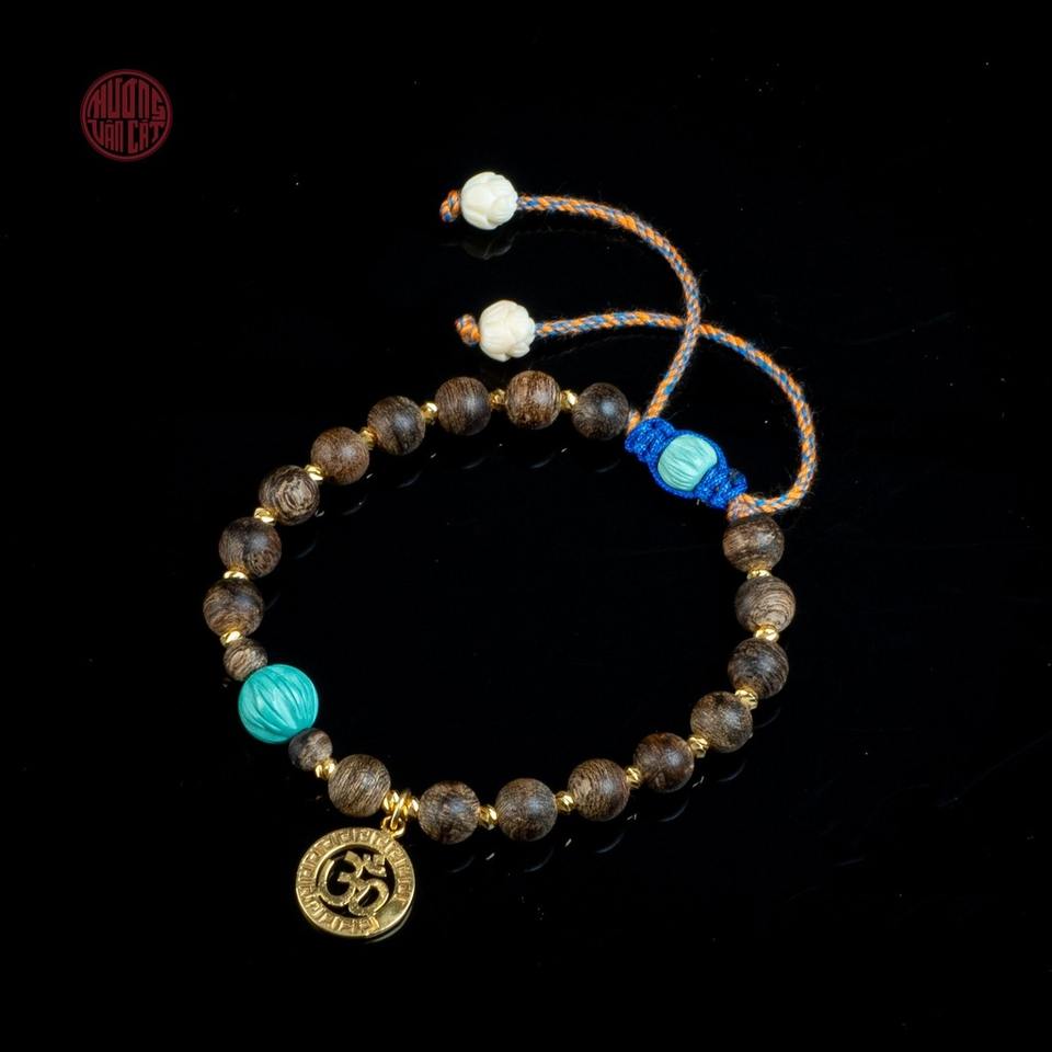 กำไลข้อมือไม้กฤษณาธรรมชาติขนาด 6 มม. ประดับด้วยทองคำผสมและหินทิเบต ราคาถูก