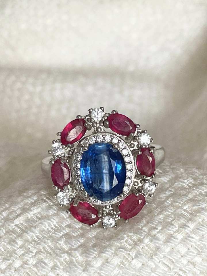 ชื่อผลิตภัณฑ์:ธรรมชาติรูปไข่สีฟ้า kyanite และทับทิมสีแดง