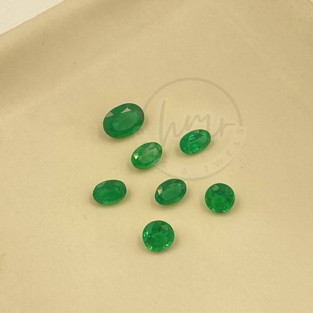 พลอยมรกตทรงรีธรรมชาติ คุณภาพ AAA สีเขียวสดใสจากแซมเบีย สำหรับเครื่องประดับชั้นดี