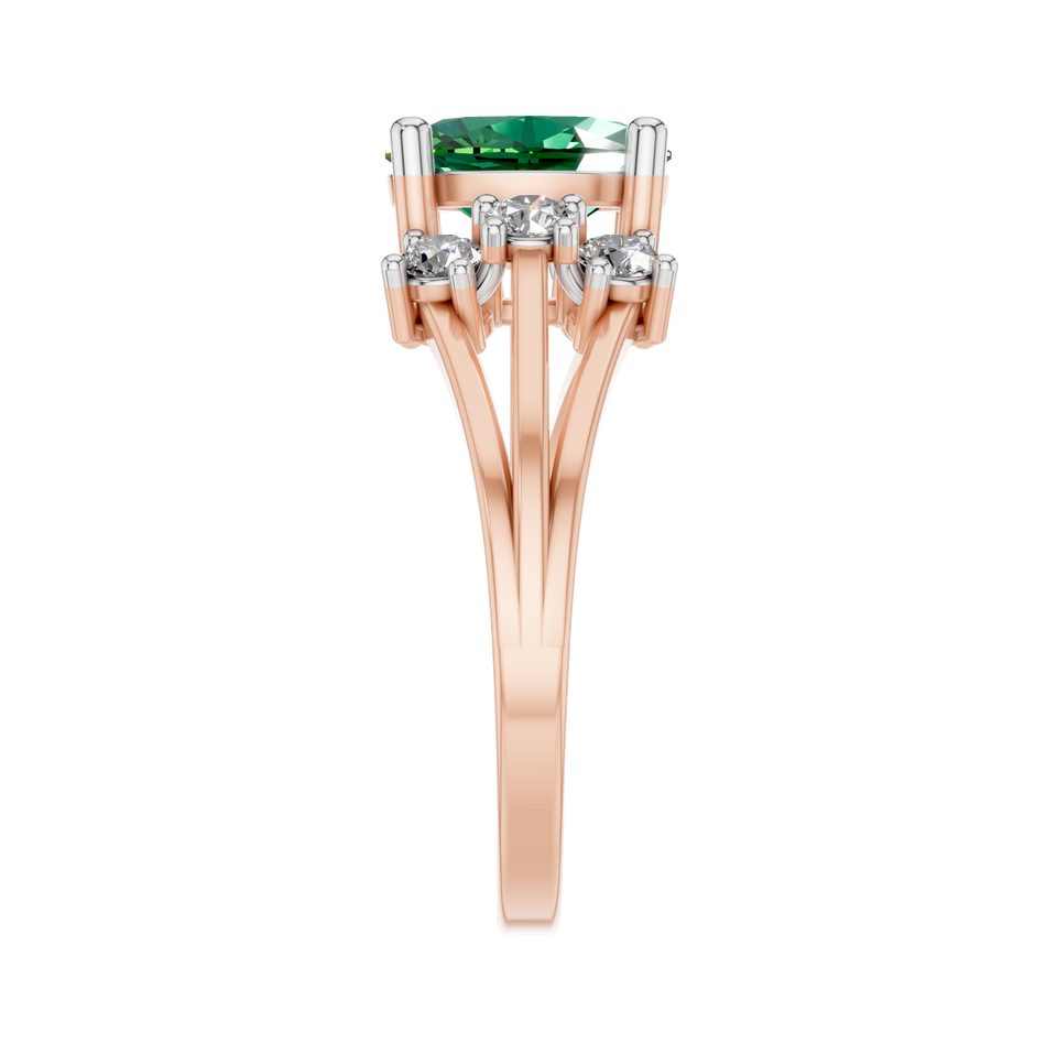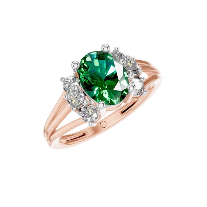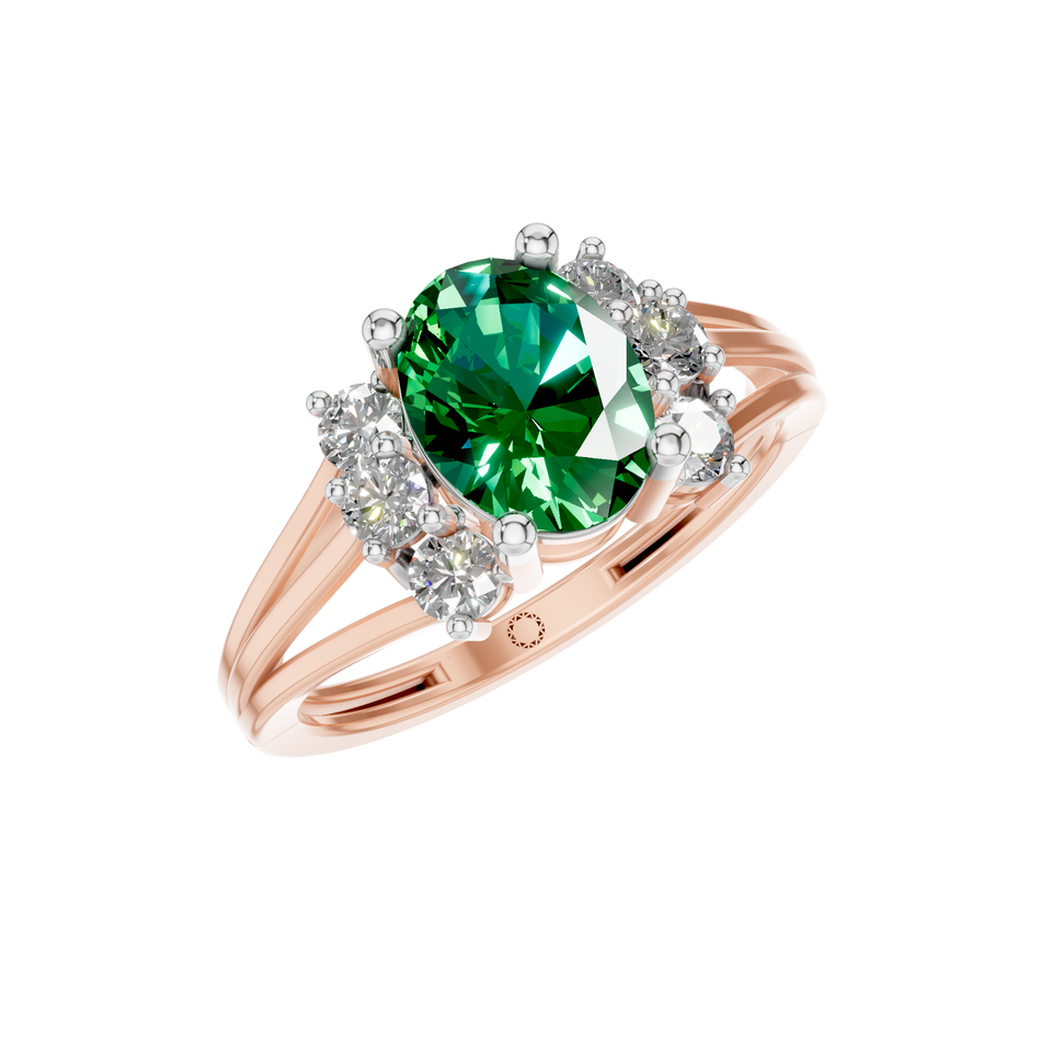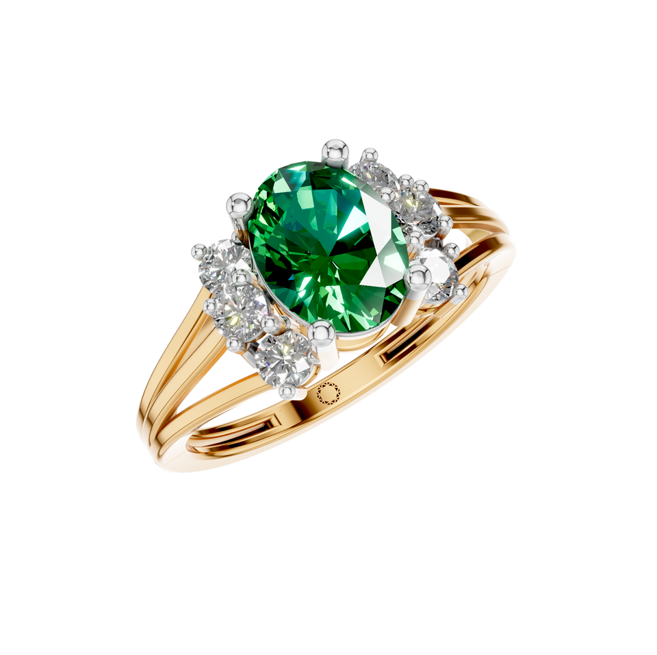 แหวนพลอยโซลิแทร์สีเขียวมรกตทรงรีตัดเป็นเอกลักษณ์ทรงรีสีทอง14K/18K สำหรับผู้หญิง