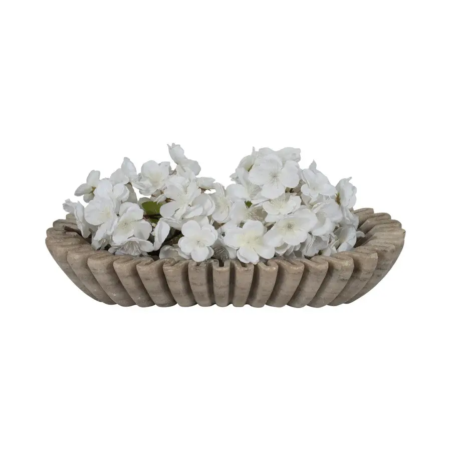 Natural Oval Scalloped Beige Marble Handmade Stone Bowl Modern Kitchen Dining Living Room Wall Cladding Luxury Fire Resistant