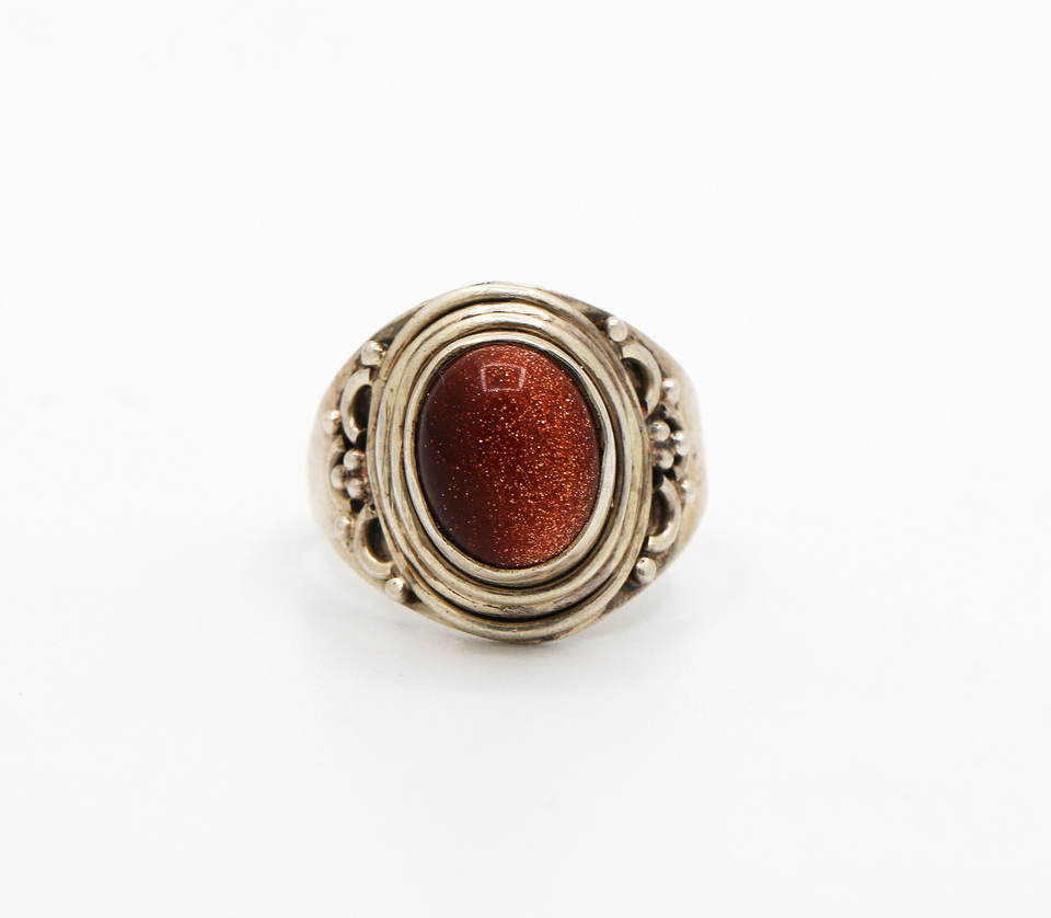 อัญมณีซันสโตนรูปไข่ธรรมชาติ 925 เครื่องประดับแหวนเงินแท้สําหรับผู้ค้าส่ง