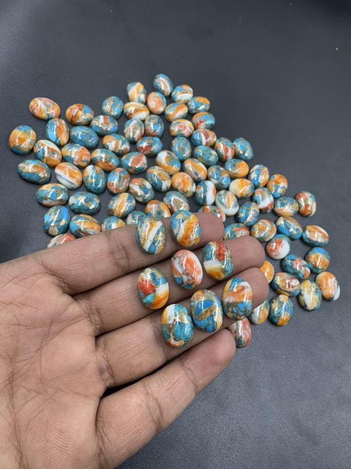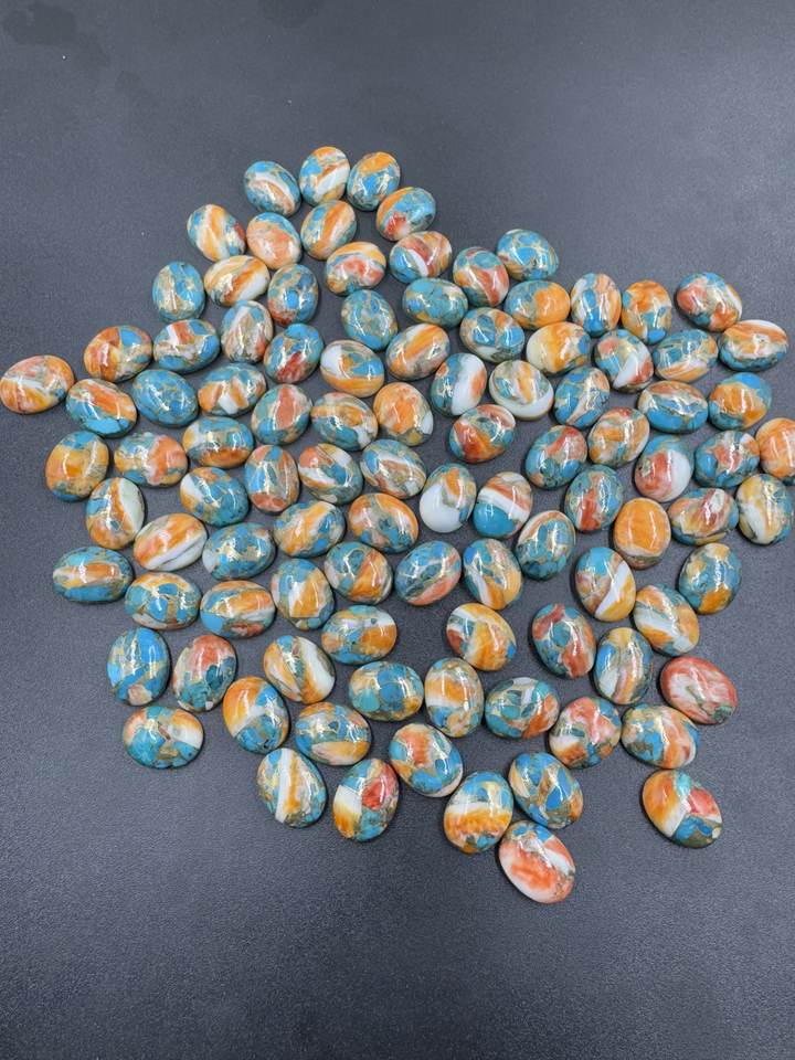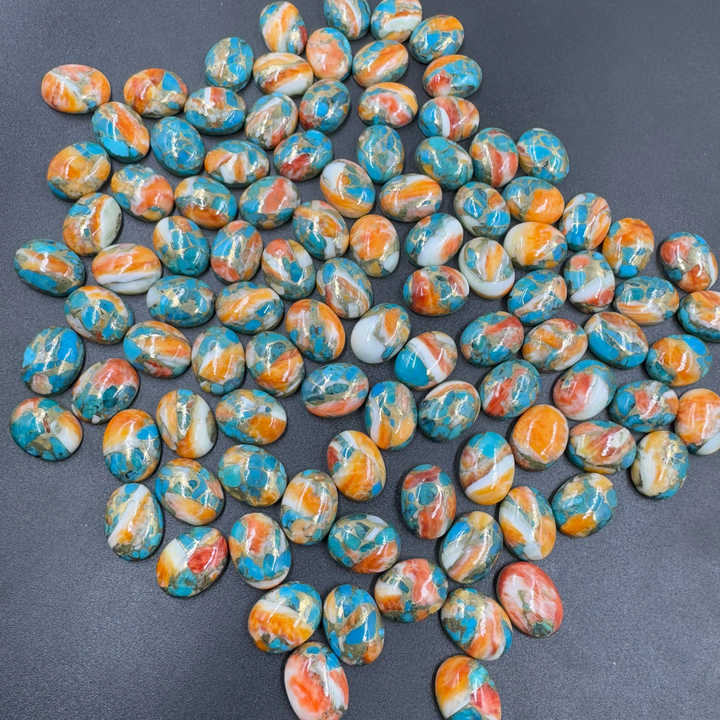 อัญมณีธรรมชาติเจียระไนทรงรีขนาด12X16มม. ทำจากทองแดงหอยนางรมสีเทอร์ควอยซ์ทรงรีหลวมสำหรับทำเครื่องประดับขายส่งจำนวนมาก