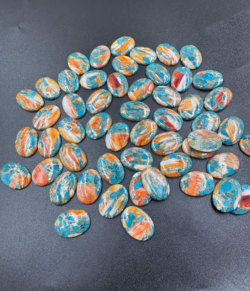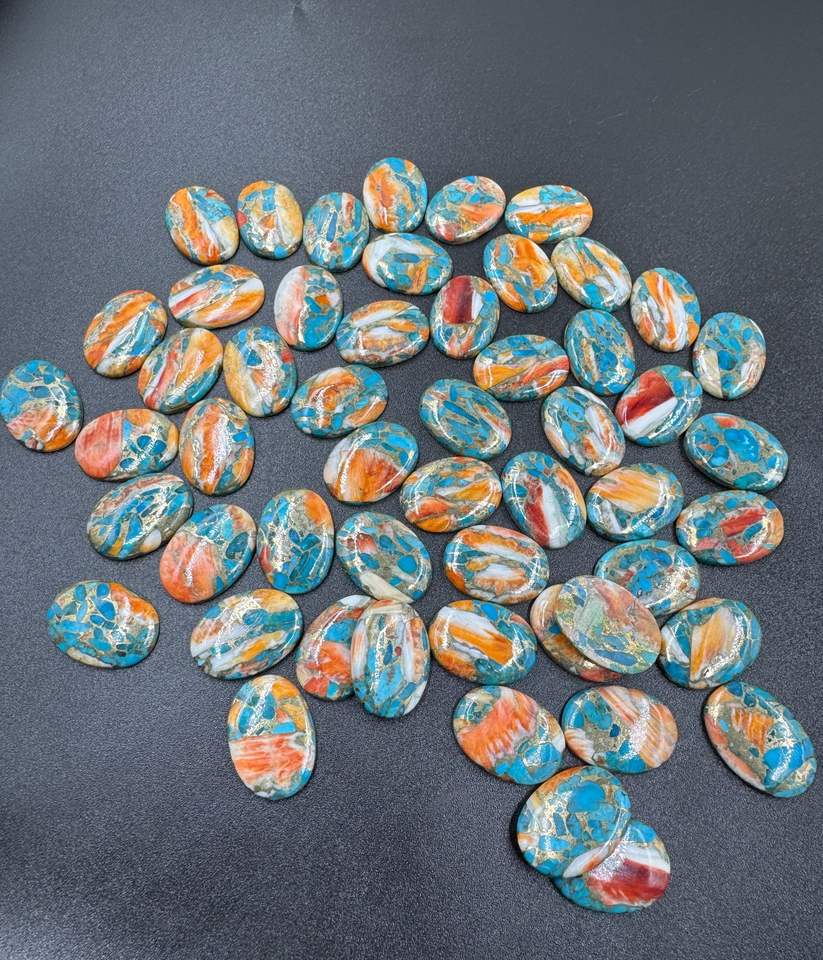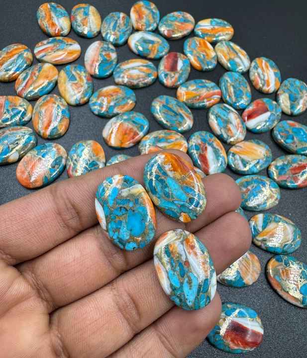 พลอยทองแดงหอยนางรมธรรมชาติสีเทอร์ควอยส์รูปไข่เรียบอัญมณีหลวมคุณภาพสูงสำหรับทำเครื่องประดับ18X25มม. ขายส่งล็อต