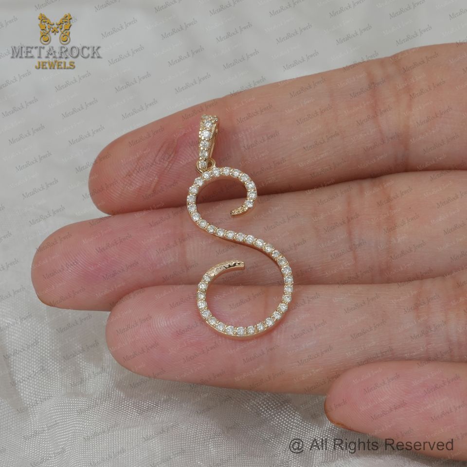 จี้เพชรธรรมชาติทรงใหญ่ตัวอักษร S ทองคำ 14k สีเหลือง งานแฮนด์เมด จี้ห้อยคอแบบละเอียดอ่อน เครื่องประดับสำหรับทุกเพศ ขายส่ง