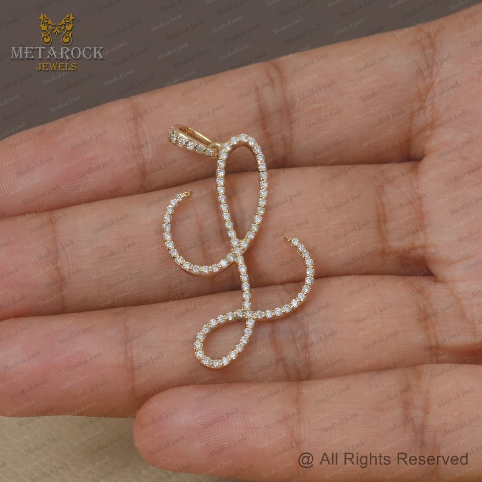 จี้เพชรธรรมชาติทรงหยดน้ำ ทองคำ 14k สีเหลือง ตัวอักษร L ขนาดใหญ่ งานแฮนด์เมด เครื่องประดับจี้สวยงาม ขายส่ง