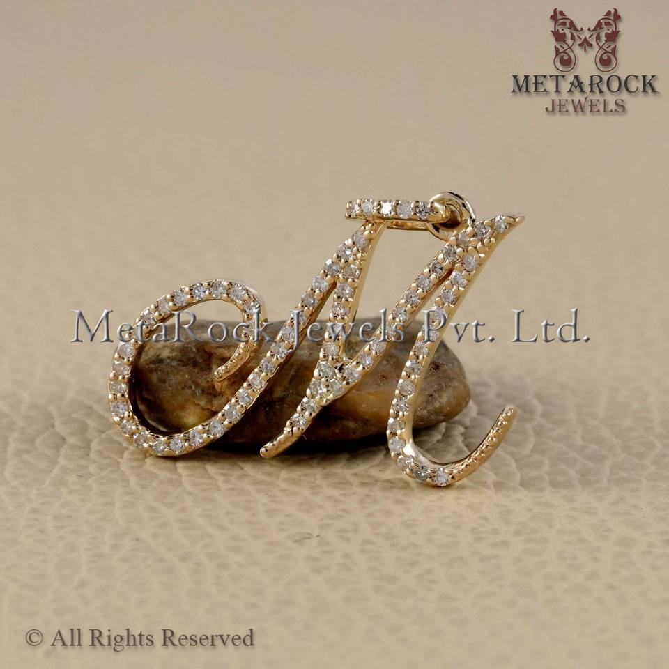 จี้เพชรธรรมชาติรูปตัวอักษร M ทองคำ 14k ทำมือ ของขวัญคริสต์มาส จี้ตัวอักษร M