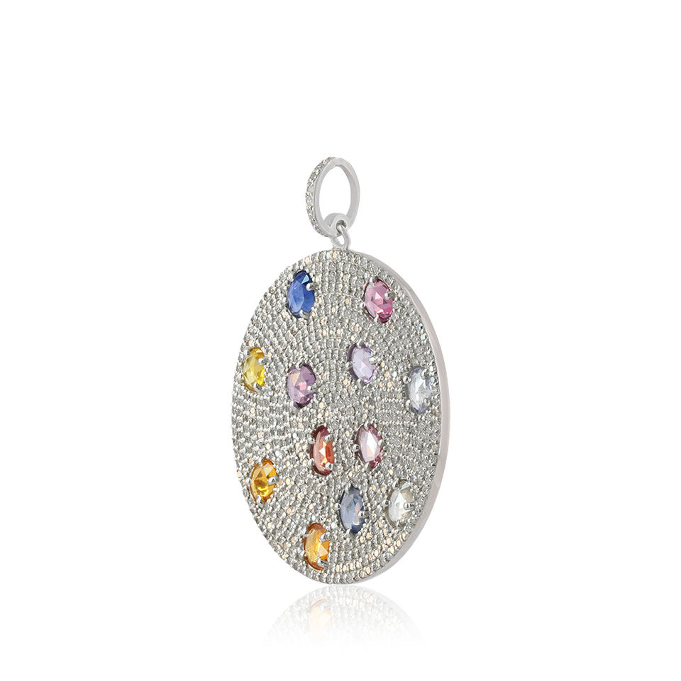 Pendant Name:Pave Diamond 925 Silver Multi Sapphire Pendant