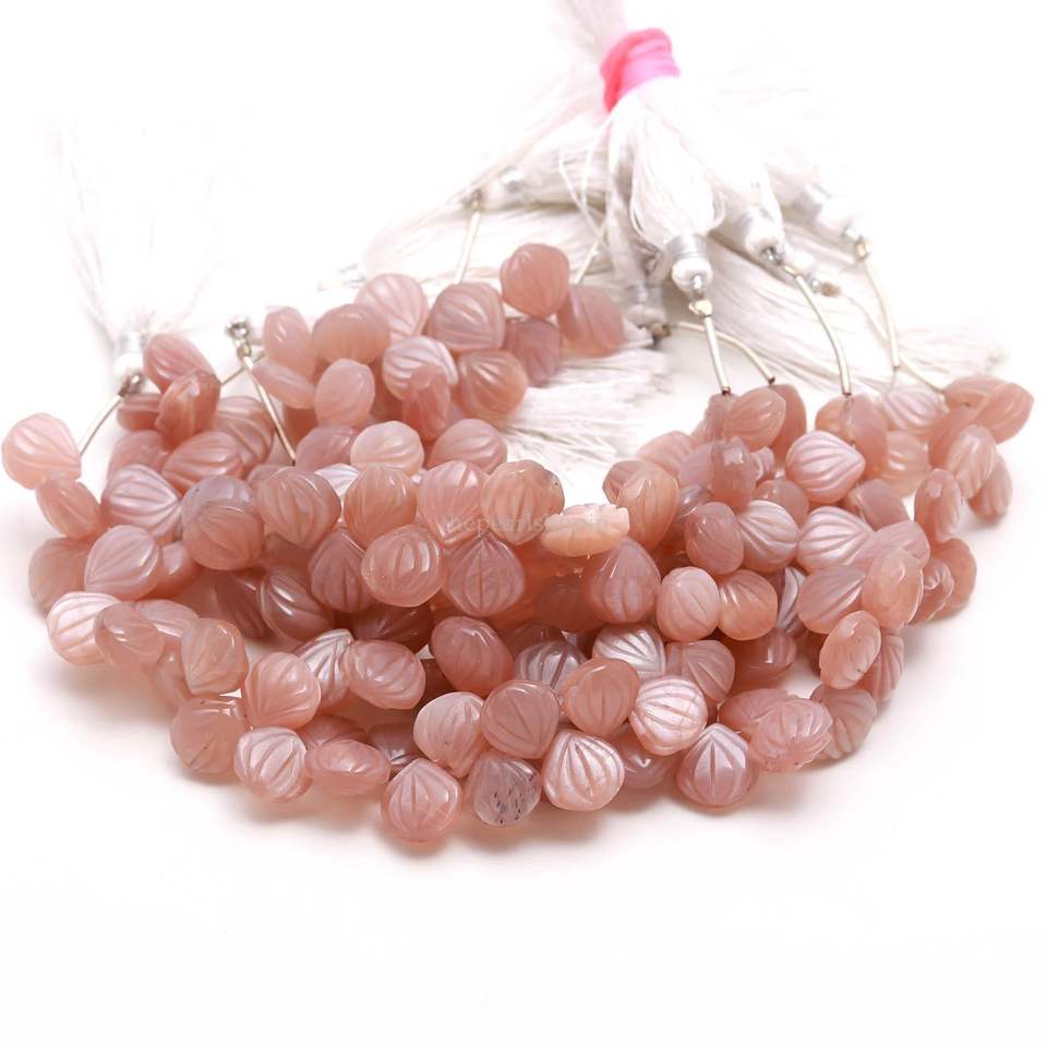ลูกปัดหินมูนสโตนสีพีชธรรมชาติแกะสลักจากเปลือกหอย เจาะรูด้านข้าง ขนาด 9-10 มม. ลูกปัดมูนสโตนแกะสลักด้วยมือ สำหรับทำเครื่องประดับ ขายส่ง