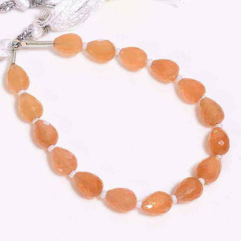 ลูกปัดมูนสโตนทรงหยดน้ำเหลี่ยมเพชรพลอยสีพีชธรรมชาติ ขนาด 6-8 มม. สำหรับทำเครื่องประดับ ขายส่งจำนวนมาก