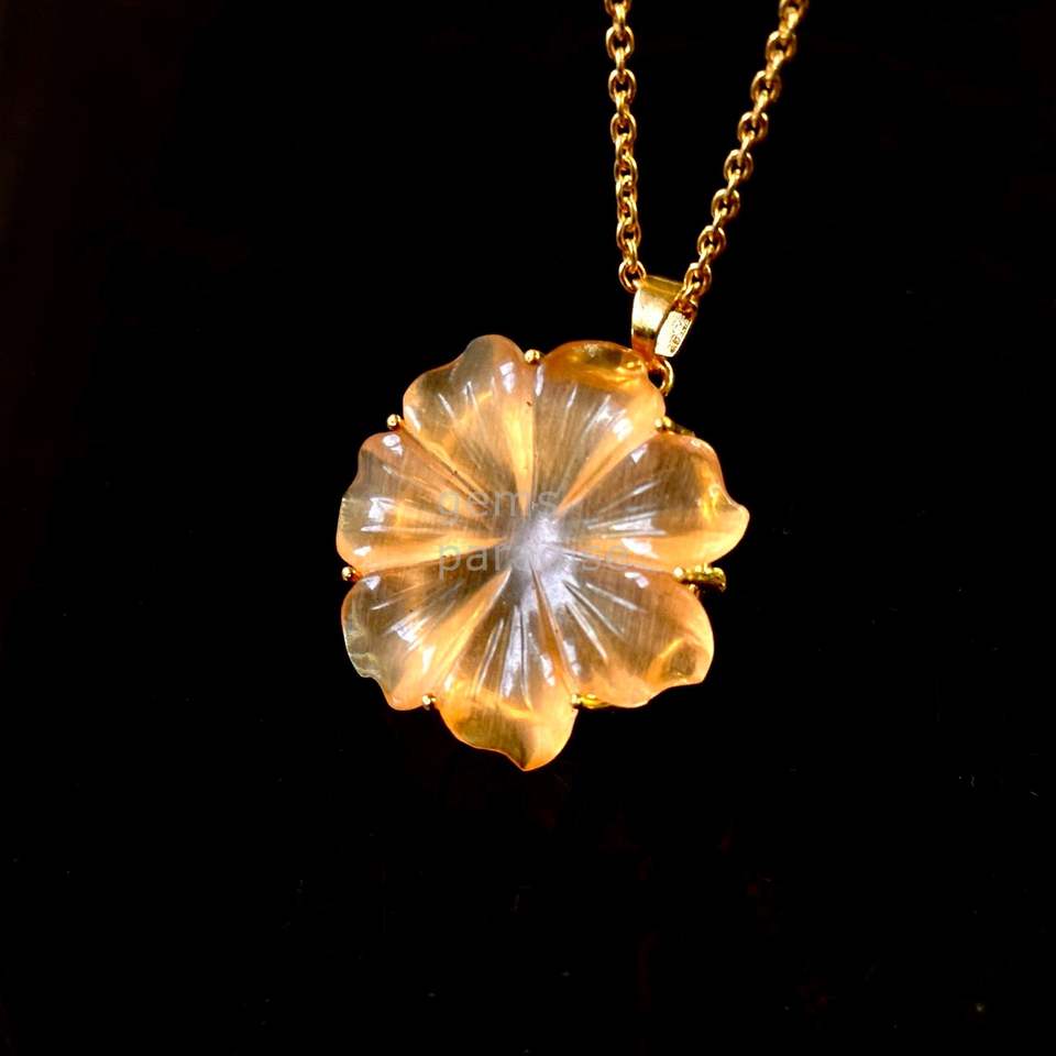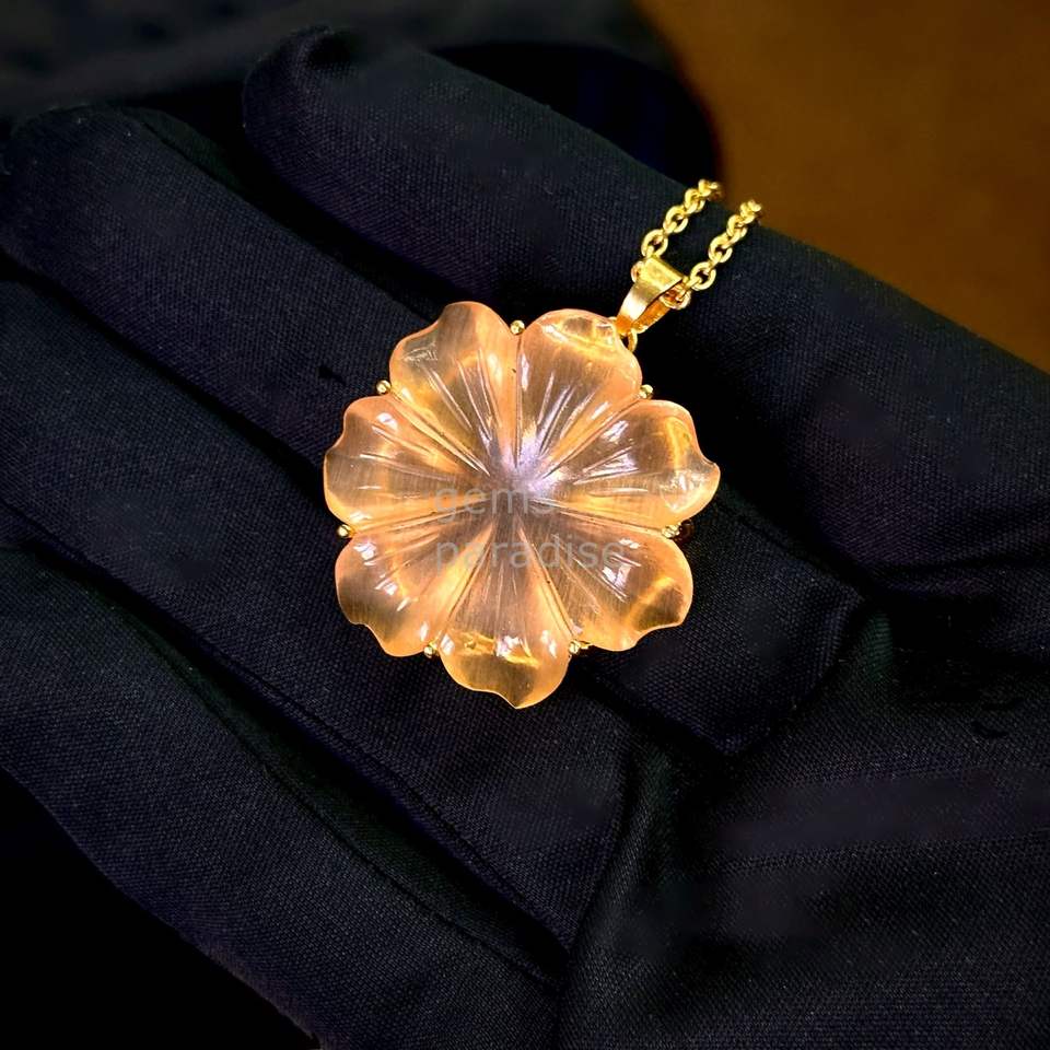 จี้สร้อยคอรูปดอกไม้มูนสโตนสีพีชธรรมชาติสำหรับผู้หญิง จี้คริสตัลพลอยมูนสโตนแกะสลักด้วยมือ งานแฮนด์เมด