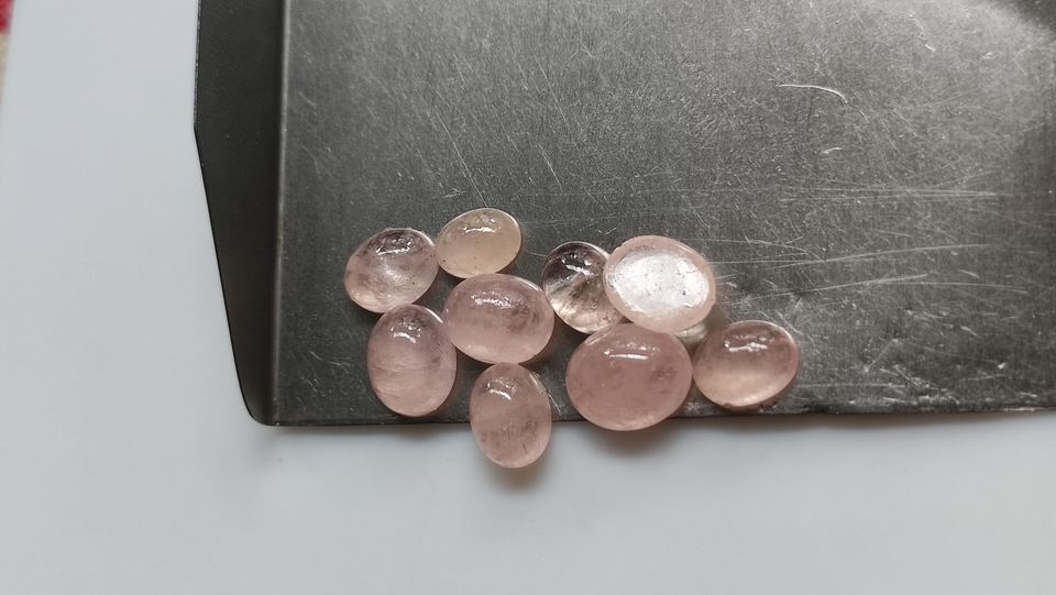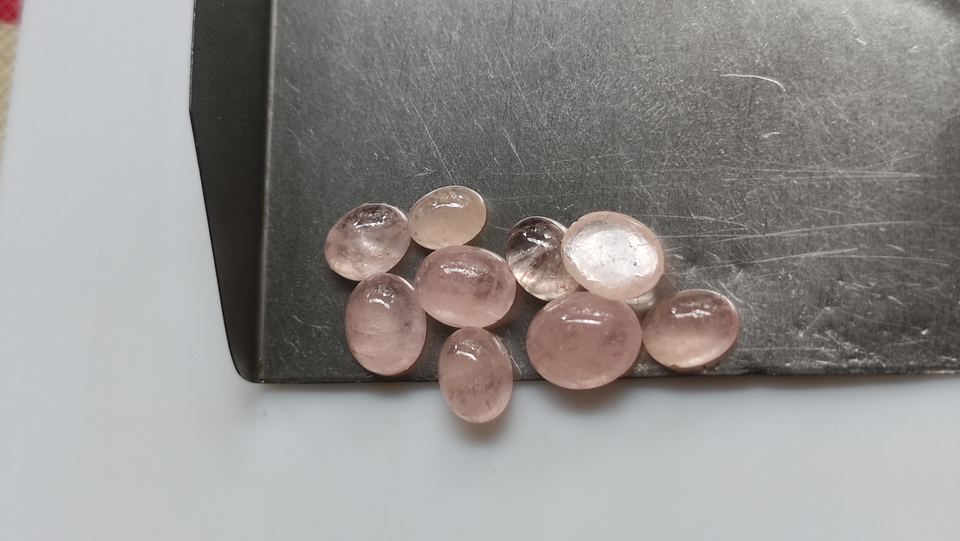 พลอยมอร์แกไนต์สีพีชธรรมชาติทรงรีขนาด 6 มม. แบบเจียระไนสีชมพู ด้านหลังแบน ขายส่งพลอยสำหรับทำเครื่องประดับ DIY