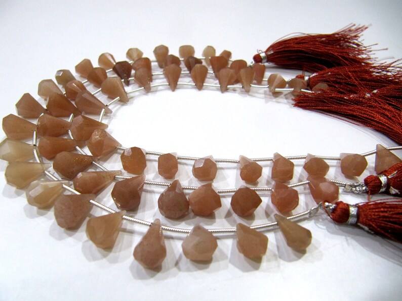 ลูกปัดพลอยมูนสโตนธรรมชาติทรงหยดน้ำขนาด6X10มม. ถึง9x15มม. ขายต่อเส้นยาว8นิ้ว