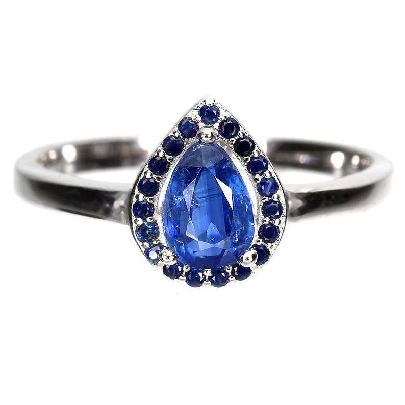 Keyword:Natural Pear Kyanite Blue Sapphire Halo Ring