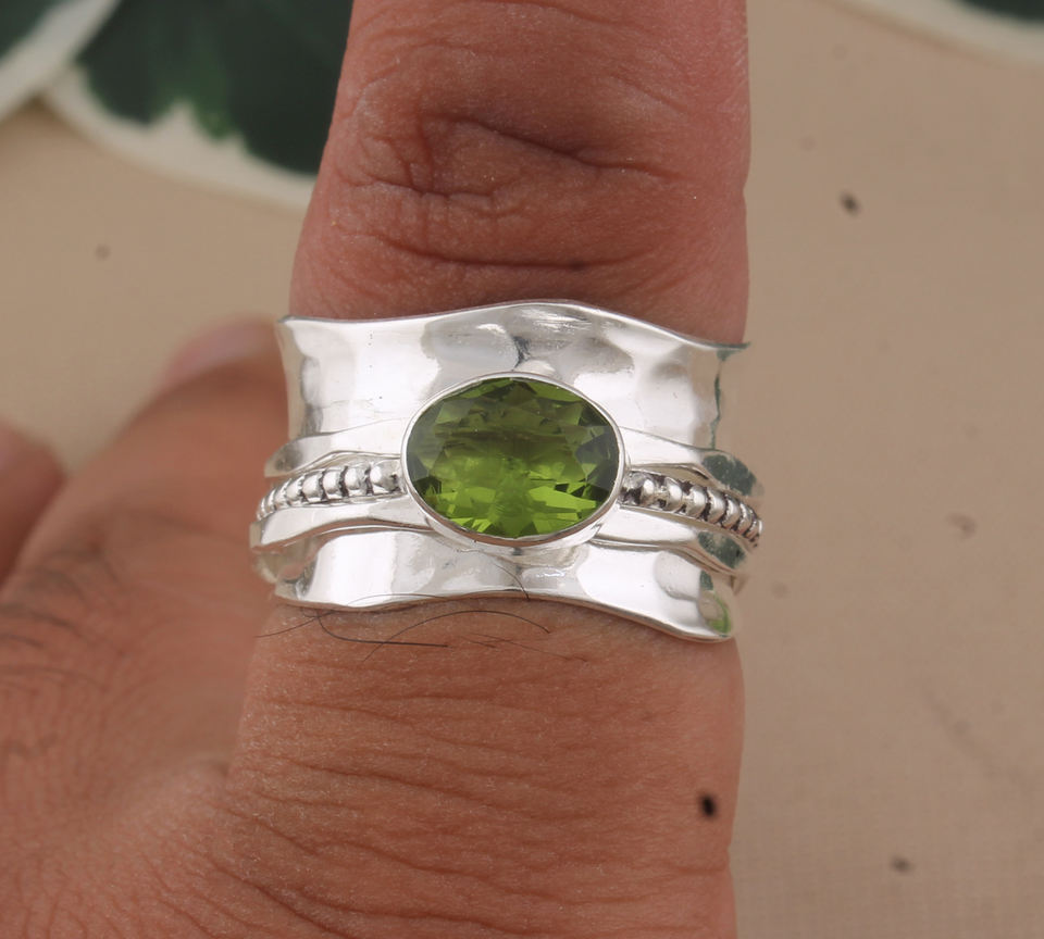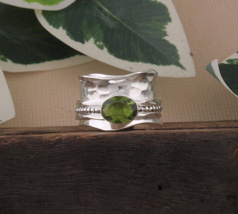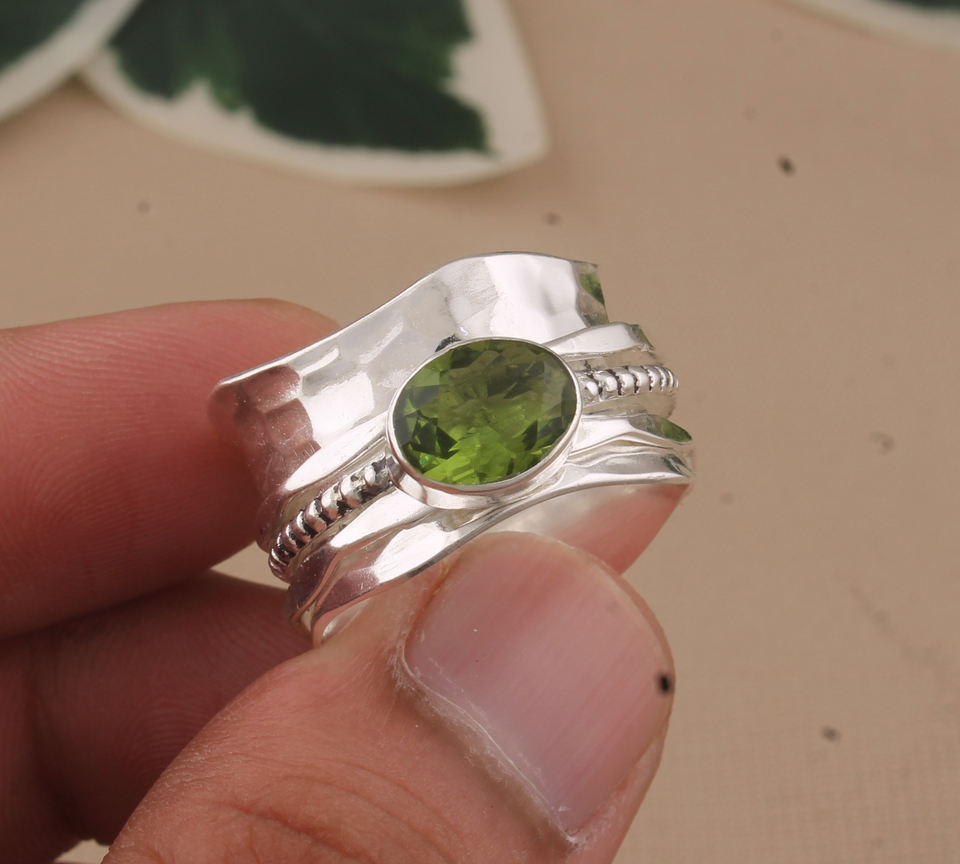 แหวนเงินแท้ 925 ประดับเพอริดอทดิบธรรมชาติ ทรงวงแหวน ประดับพลอยสีเขียว ของขวัญวันเกิดสำหรับผู้หญิง เนื่องในเดือนสิงหาคม