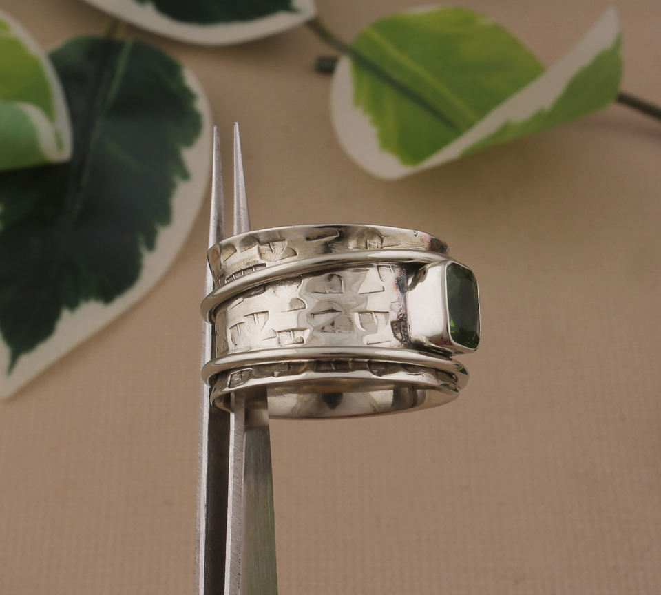 แหวนเงินแท้ 925 ประดับเพอริดอทดิบสีเขียวมะกอกธรรมชาติ ทรงเบเซลเซ็ตติ้ง สำหรับคนเกิดเดือนสิงหาคม เหมาะสำหรับใส่ซ้อนกับแหวนอื่นๆ