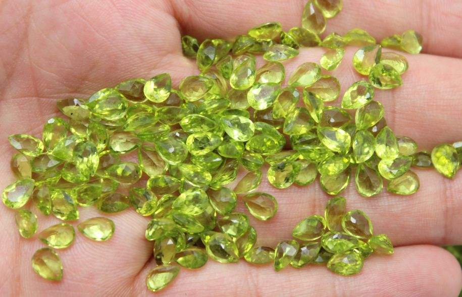พีริโดตธรรมชาติพลอยหินตัดรูปลูกแพร์พลอยหลวม