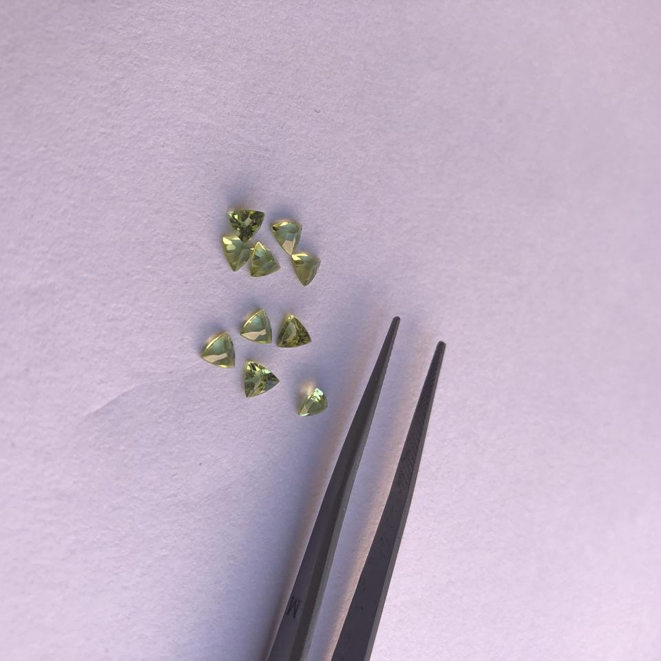 ชื่อสินค้า:พลอยเพอริดอทธรรมชาติ เจียระไนเหลี่ยมเพชรทรงสามเหลี่ยม แบบเม็ด