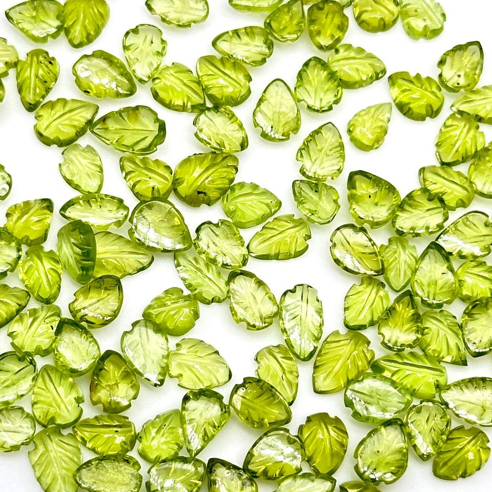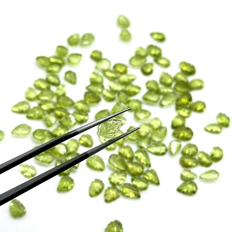 อัญมณีแกะสลักใบเพอริโดธรรมชาติสำหรับทำเครื่องประดับอัญมณีไครโซไลต์