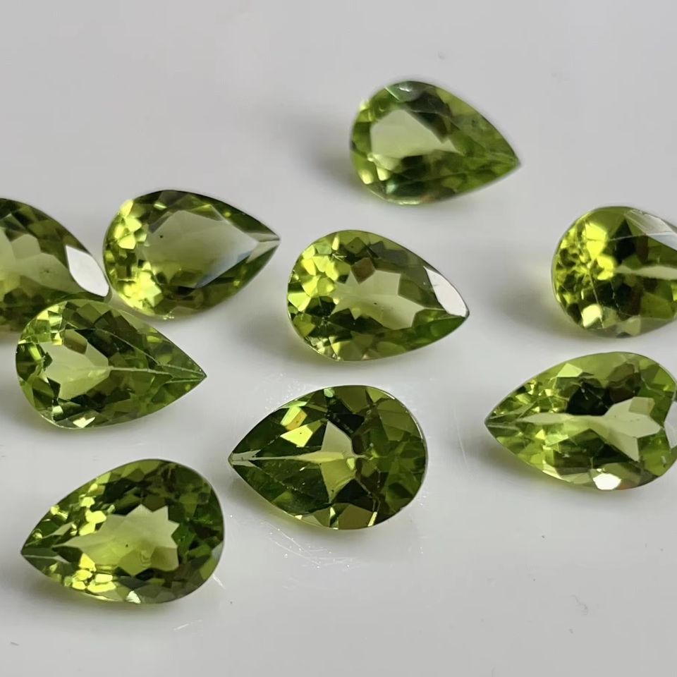 ลูกแพร์เพอริดอตธรรมชาติตัดขนาด7x10มม. ลูกแพร์เพอริดอตแบบหลวมคุณภาพ AAA