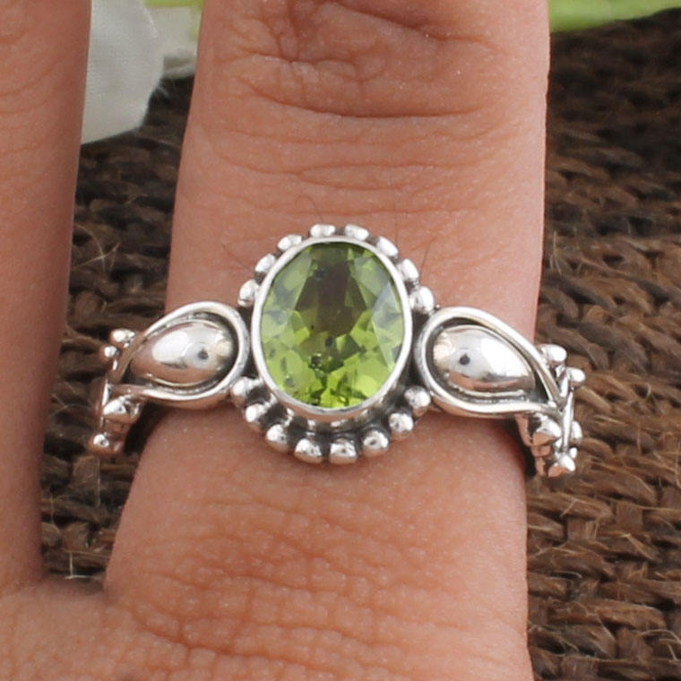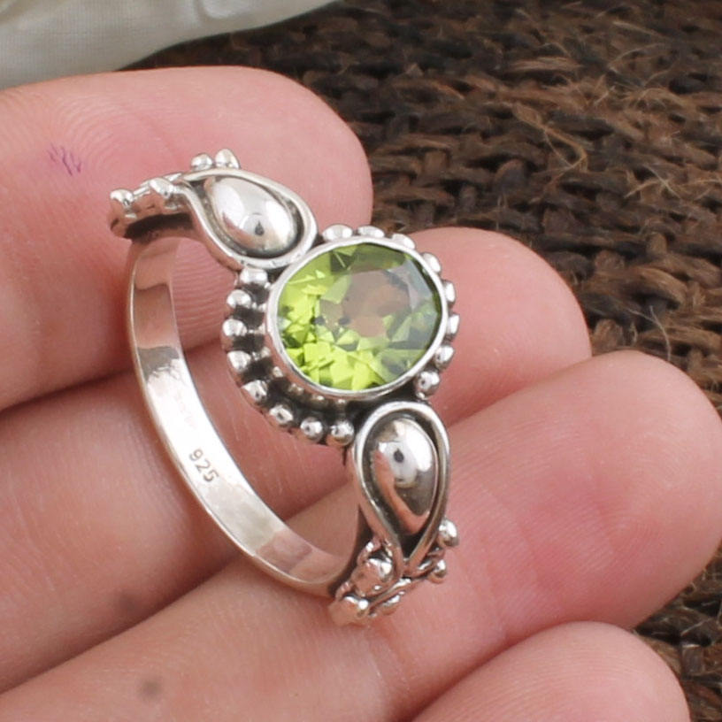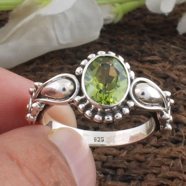 แหวนแต่งงานคลาสสิกเงินแท้ 925 ประดับเพอริดอทดิบธรรมชาติ พลอยสีเขียวประจำเดือนสิงหาคม งานแฮนด์เมด เครื่องประดับผู้หญิง ขายส่ง