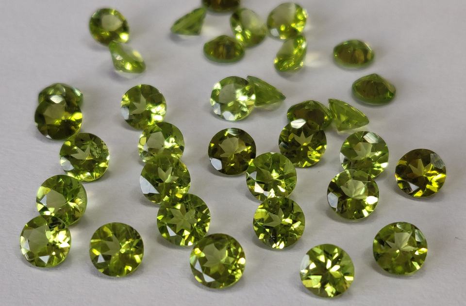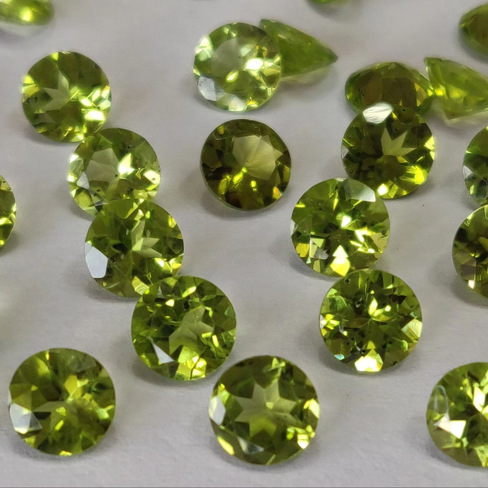 เพอริโดทธรรมชาติทรงกลมตัด2มม. เหลี่ยมเพชรพลอย-หลวม Peridot คุณภาพสูง