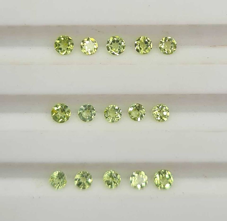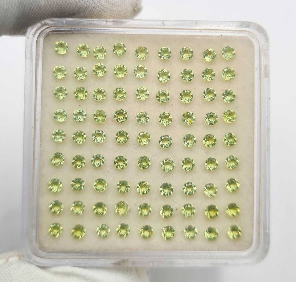 เพอริดอทดิบทรงกลมเจียระไนแบบหลวม จำนวน 100 เม็ด ขนาด 1.50-2.25 มม. พร้อมใบรับรอง IGI สำหรับทำเครื่องประดับ