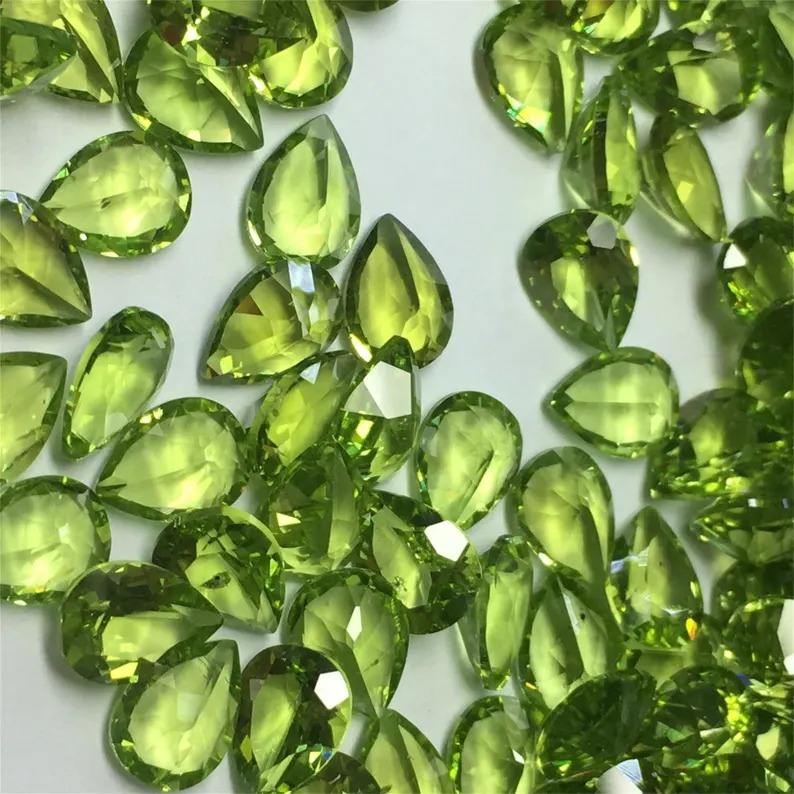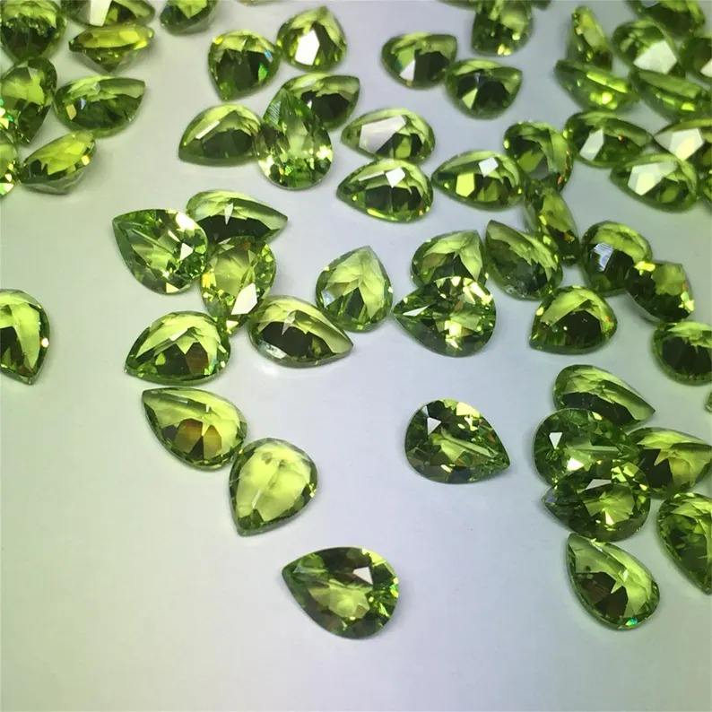 เพอริดอทดิบทรงลูกแพร์ สีเขียวมะกอก ขนาด 7x5 มม. น้ำหนัก 0.9-1.25 กะรัต รับรองโดยบุคคลที่สาม ผ่านกระบวนการเคลือบแว็กซ์/น้ำมัน เรืองแสงในที่มืด
