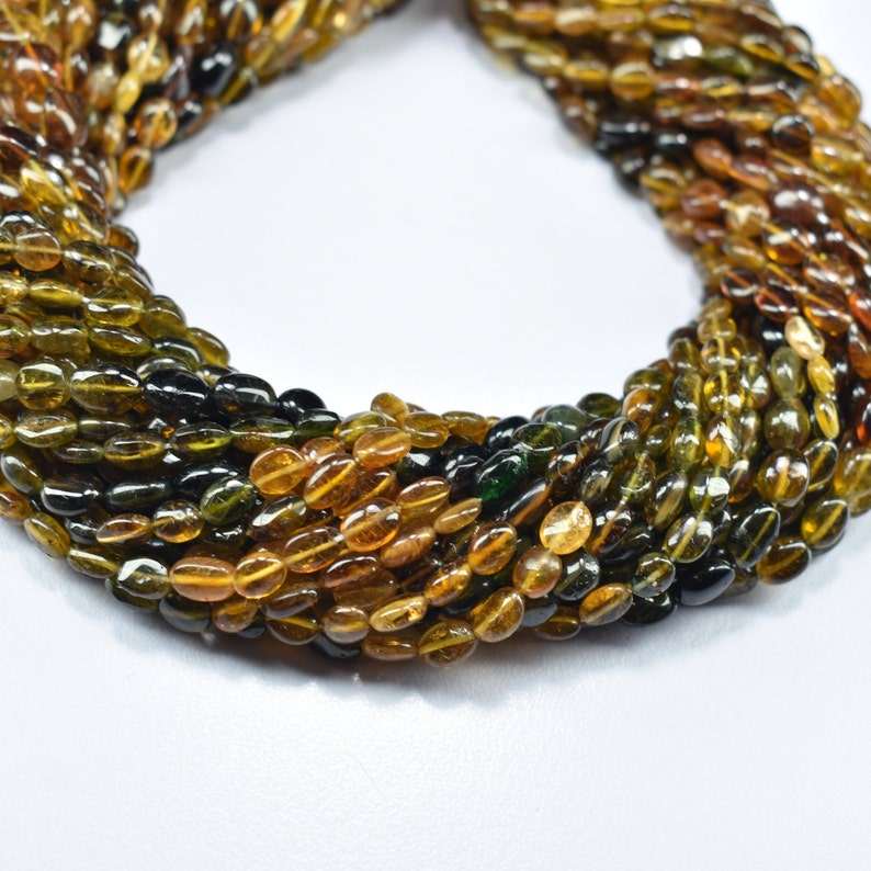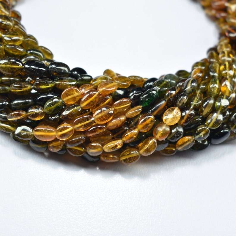 สายลูกปัดพลอยทัวร์มาลีนธรรมชาติรูปวงรีเรียบสายลูกปัดพลอยทัวร์มาลีน4-7มม. สำหรับการทำเครื่องประดับเป็นกลุ่ม