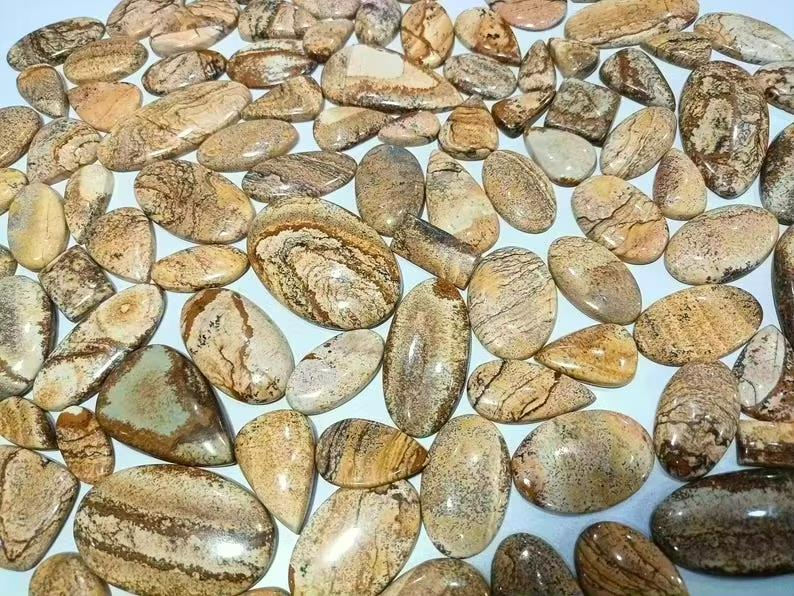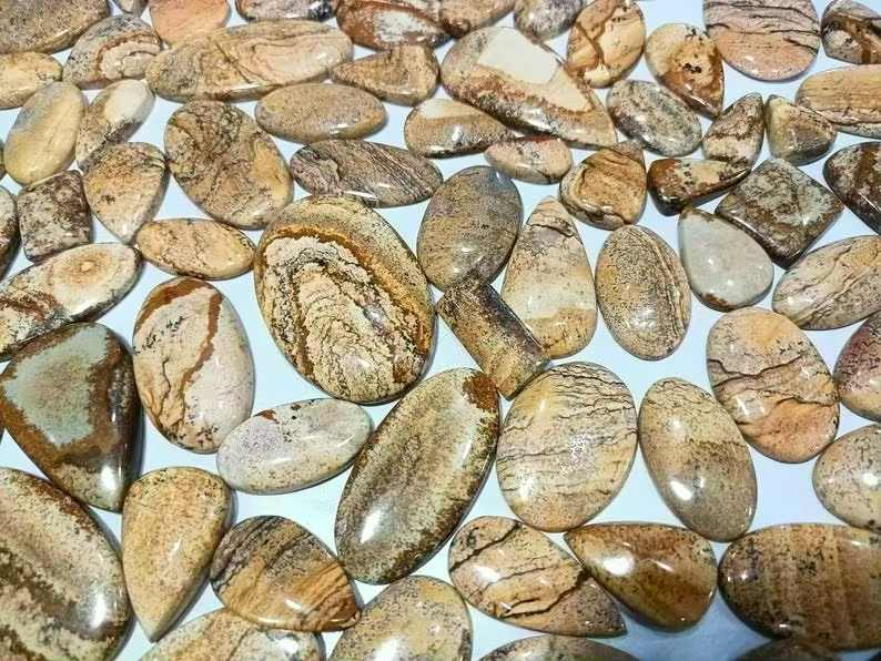 Natural Picture Jasper Cabochon Polished Loose Gemstone for Jewelry Making Premium Lot Blue Fire