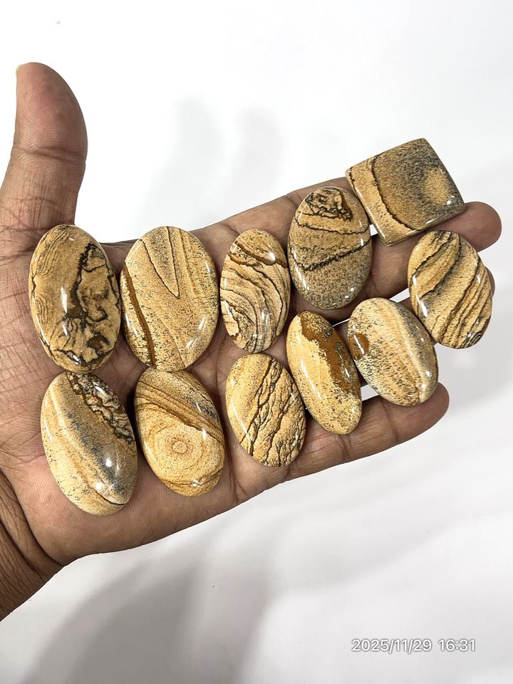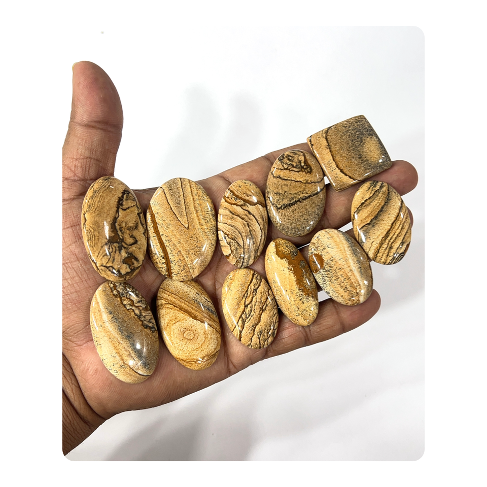 Natural Picture Jasper Loose Gemstone Cabochon Mix Shape Mix Size 20 To 30 Mm Approx.