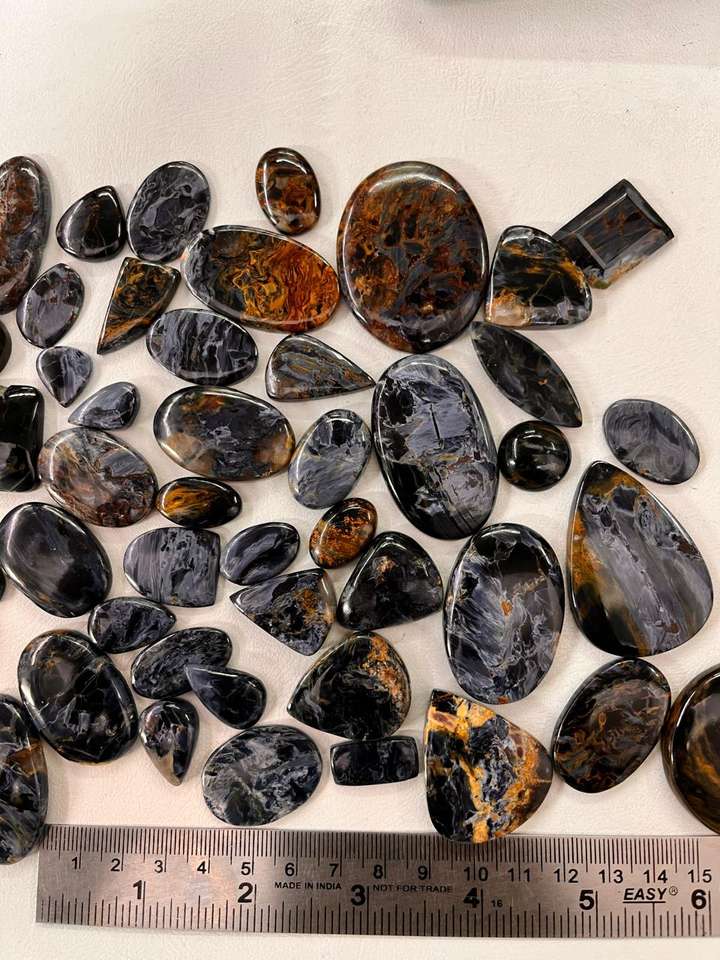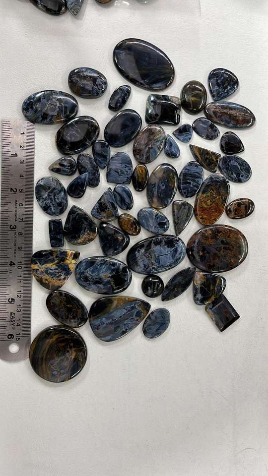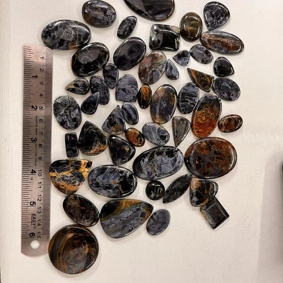 พลอยเพียเทอร์ไซต์ธรรมชาติจากนามิเบียทรงผสมทรงหลังเบี้ยพร้อมเบาะทรงวงรีมาร์คีสลูกแพร์ตัดกำเนิด