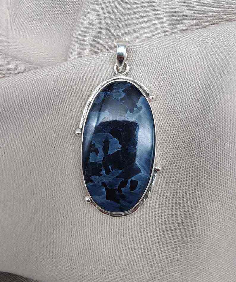 จี้เงินเพียเตอร์ไซต์ธรรมชาติ925สเตอร์บลูหมุนคริสตัลเครื่องประดับหินพายุของขวัญแฮนด์เมดที่ไม่เหมือนใครสำหรับเขาและเธอ