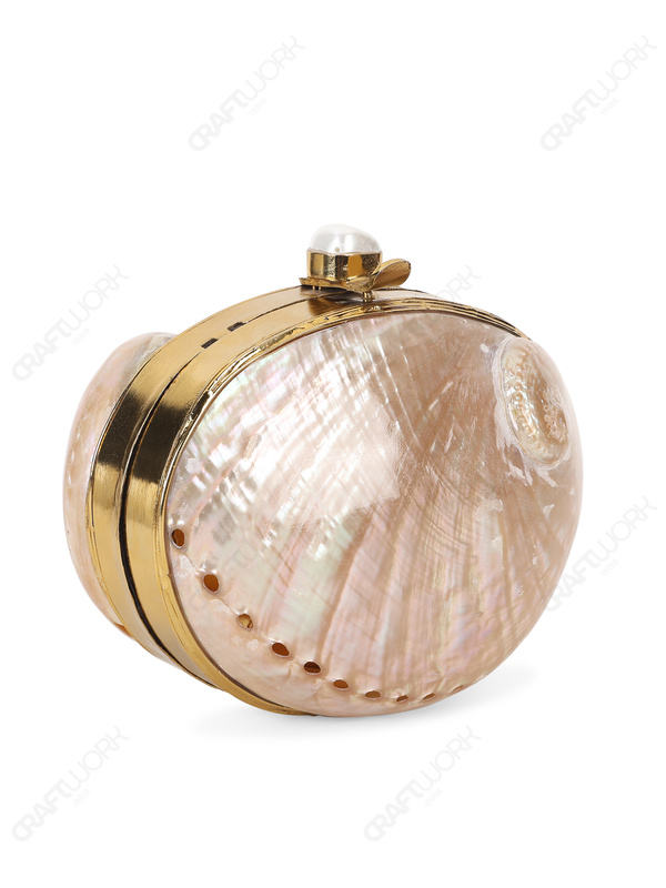 กระเป๋าคลัทช์เปลือกหอยเป๋าฮื้อสีชมพูธรรมชาติพร้อมกรอบทอง กระเป๋าทะเลสุดหรูสำหรับงานกลางคืน รับผลิตแบบ OEM และส่งออกภายใต้แบรนด์ของคุณเอง