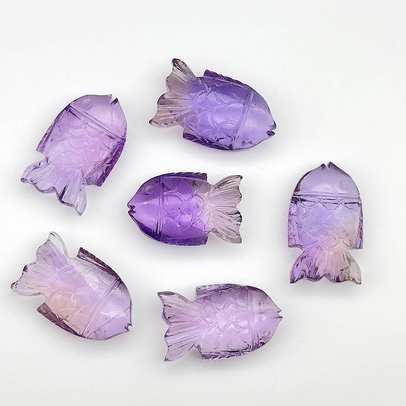 พลอยแอเมทิสต์สีชมพูแกะสลักด้วยมือรูปปลา