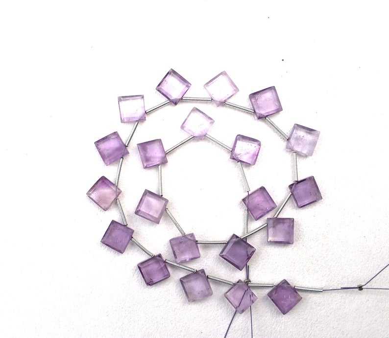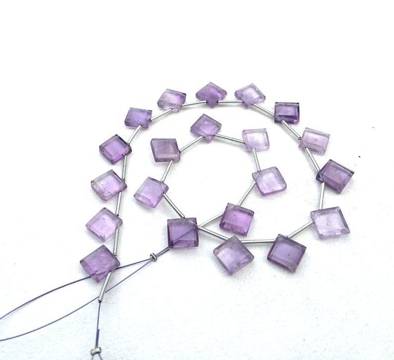 พลอยอเมทิสต์สีชมพูธรรมชาติ เกรด AAA ขนาด 8-9 มม. 20 เม็ด รูปทรงสี่เหลี่ยมเหลี่ยมเพชรพลอย สำหรับทำเครื่องประดับแฮนด์เมด ขายส่ง